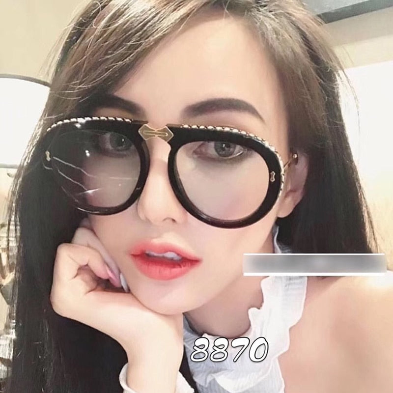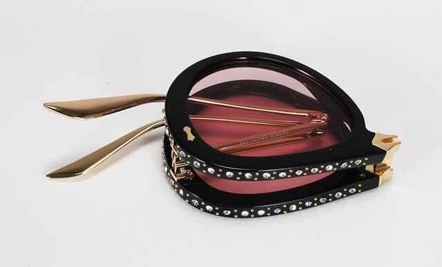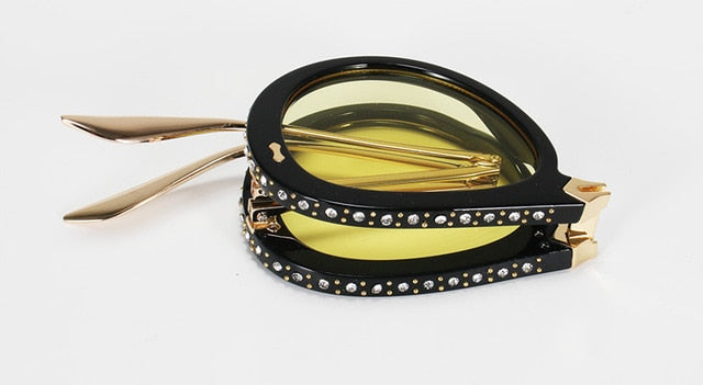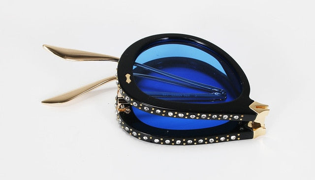 Crystal Oversize Foldable Alloy Frame Aviator Sunglasses