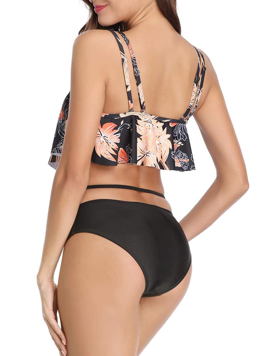 • Design: Ruffled/Racerback bikini top with high waisted ruched bikini bottoms, cover your belly and has tummy control effect for better curves.