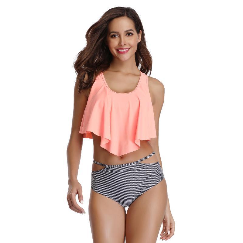 Cute High Waisted Ruffled Two Piece Tankini Swimsuit