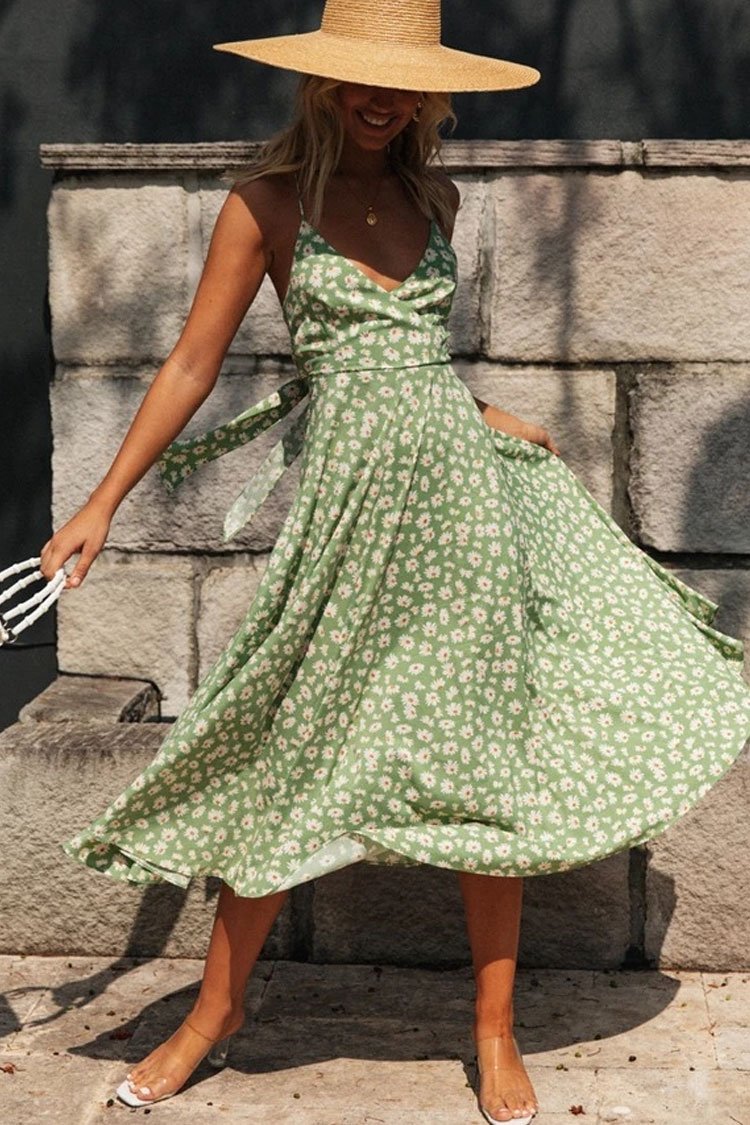 Daisy Floral Tie Back V Neck Beach Midi Dress