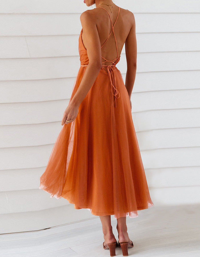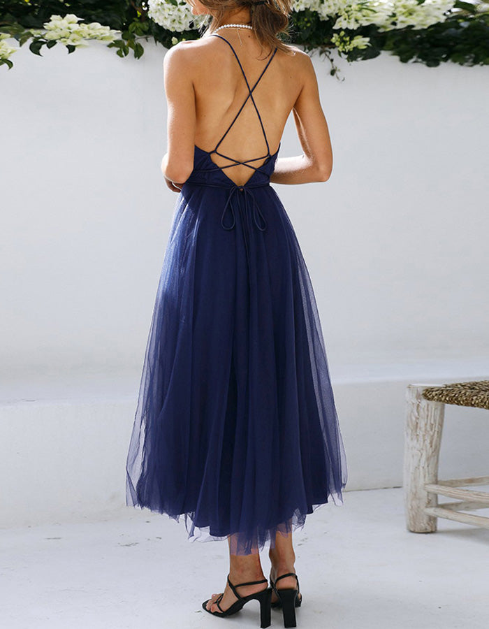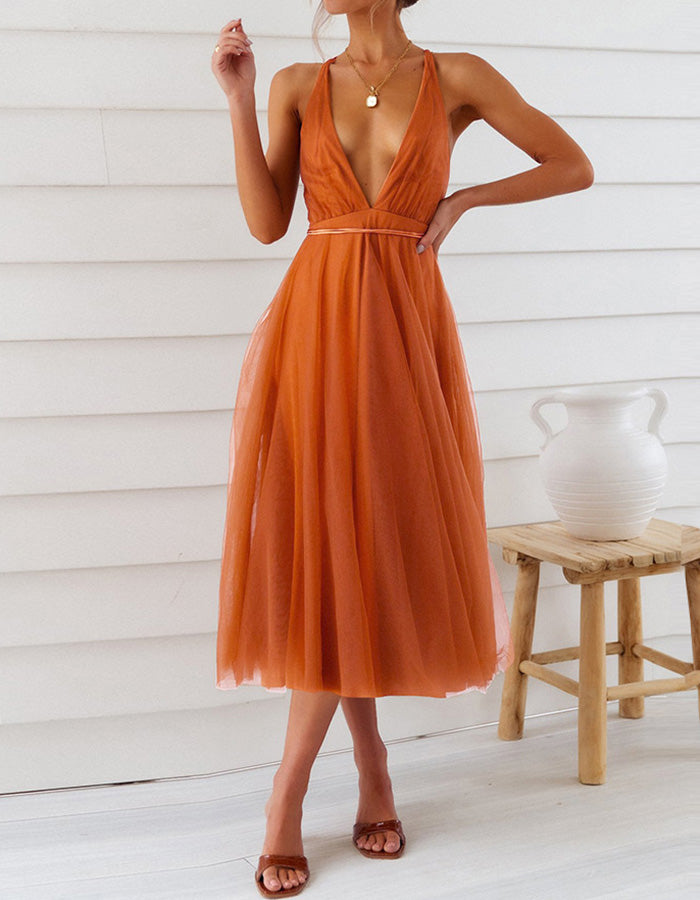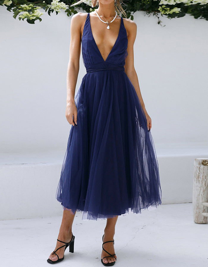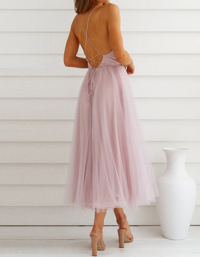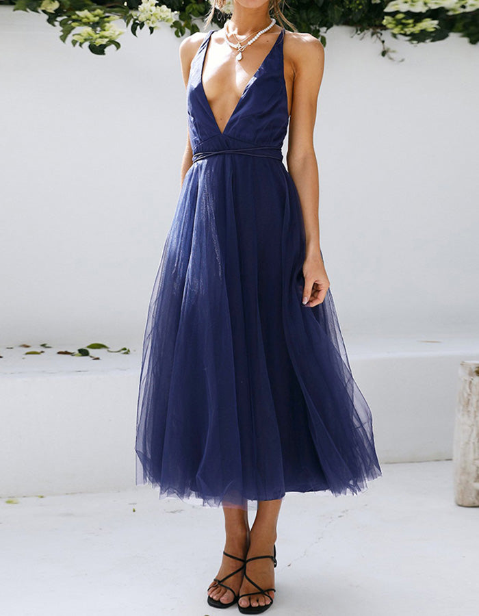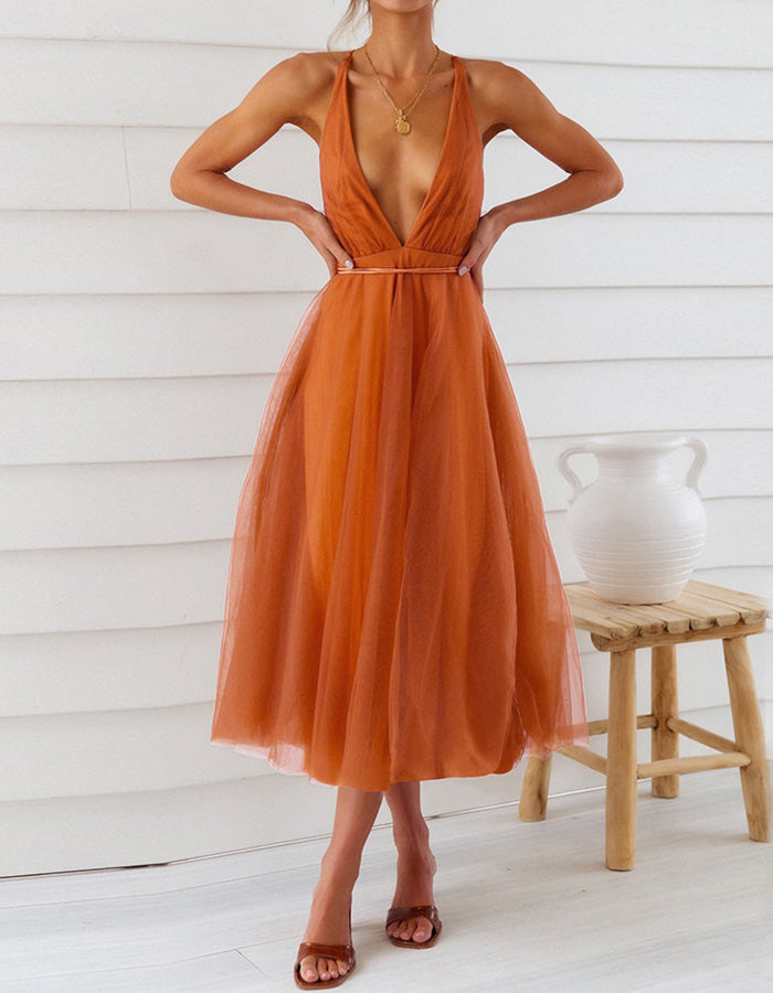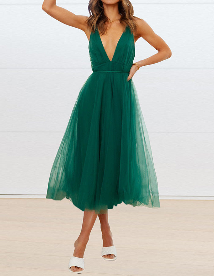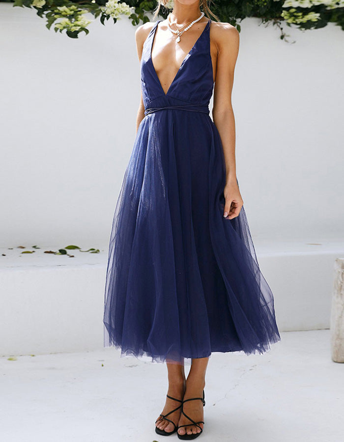 Deep V Neck Solid-color Mesh Bridesmaid Dresses Beach Dresses