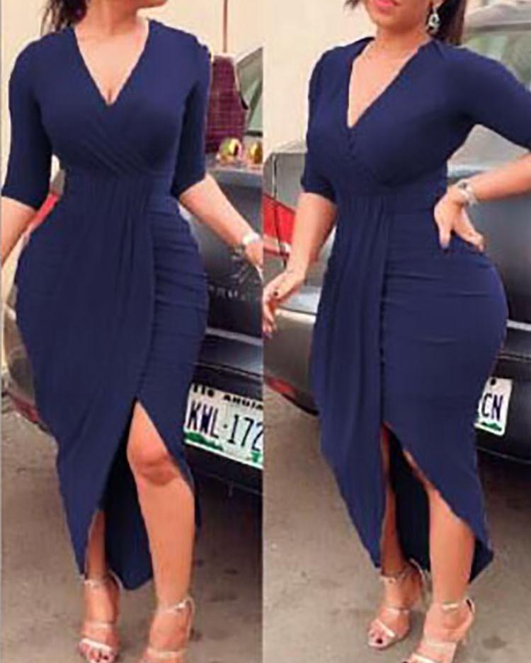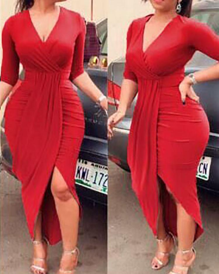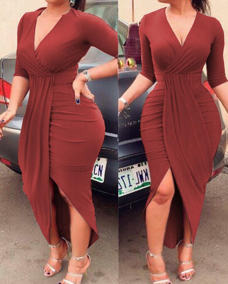 Deep V Ruched Tulip Hem Party Dress