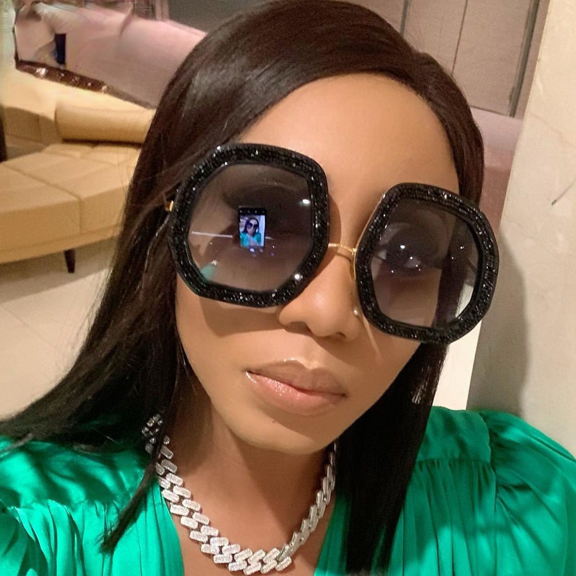 Diamond Shiny Crystal Oversized Retro Sunglasses