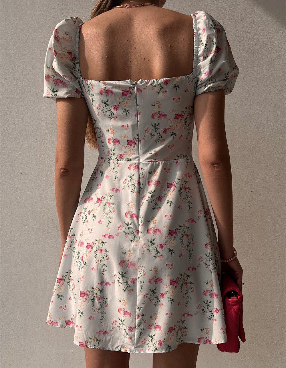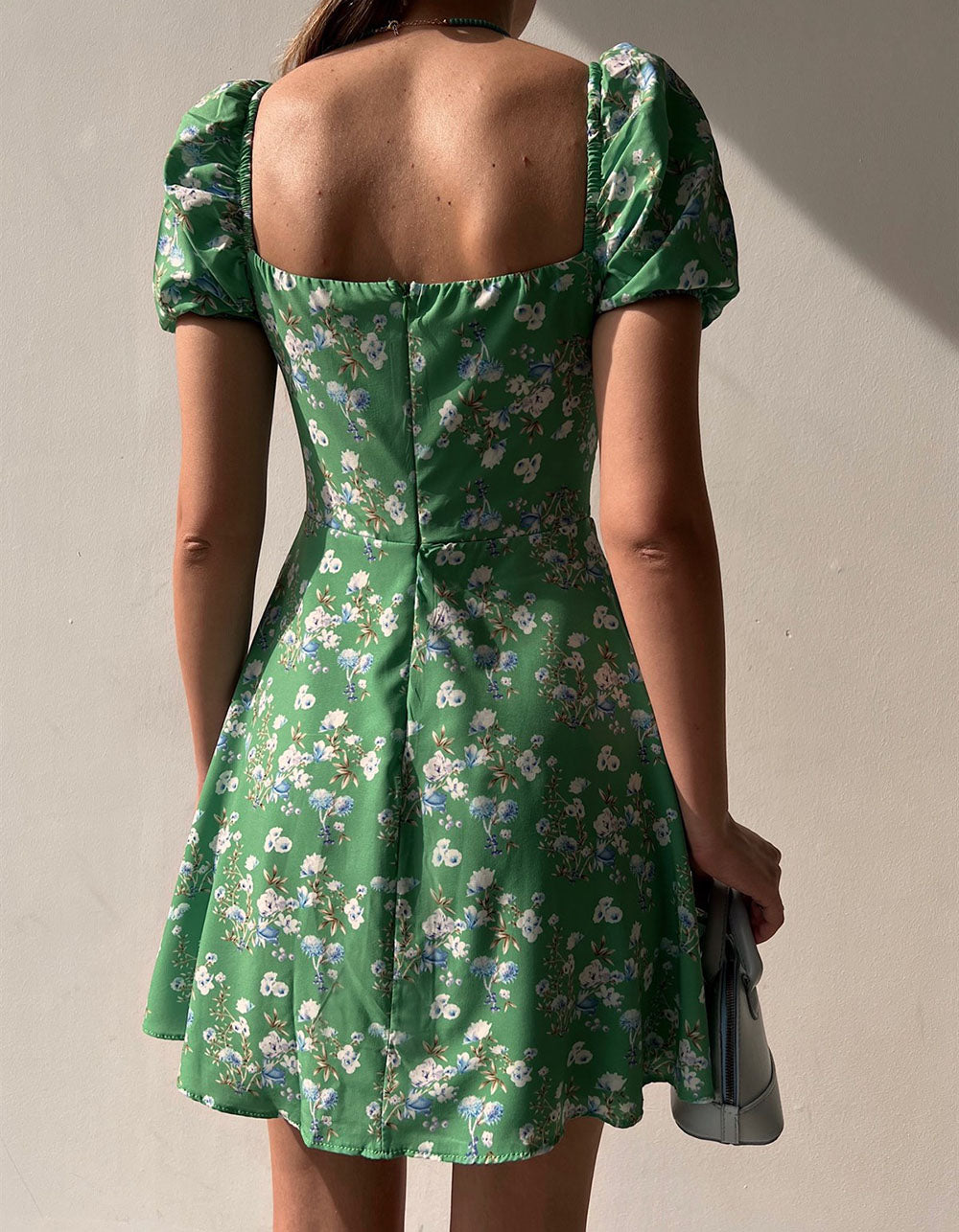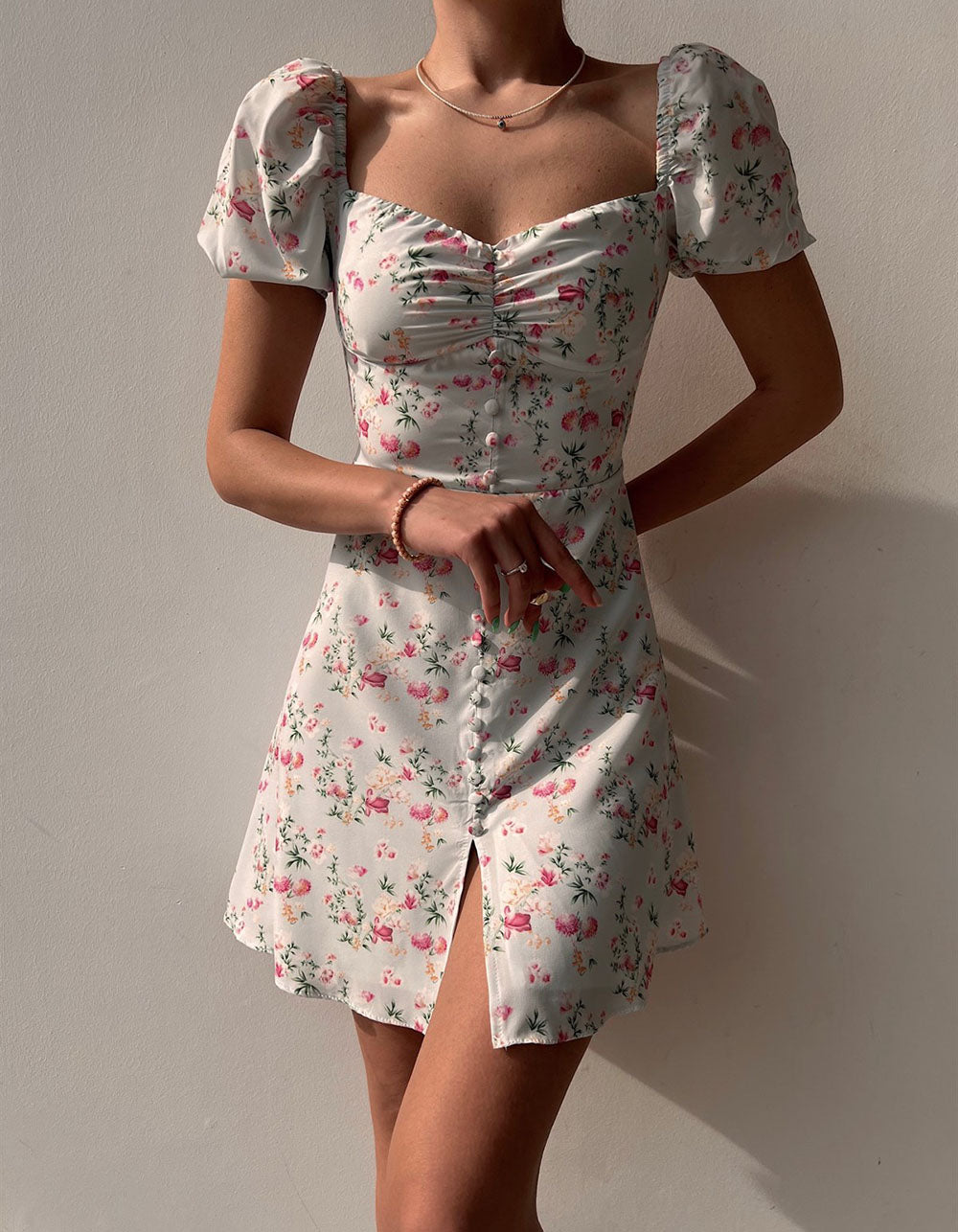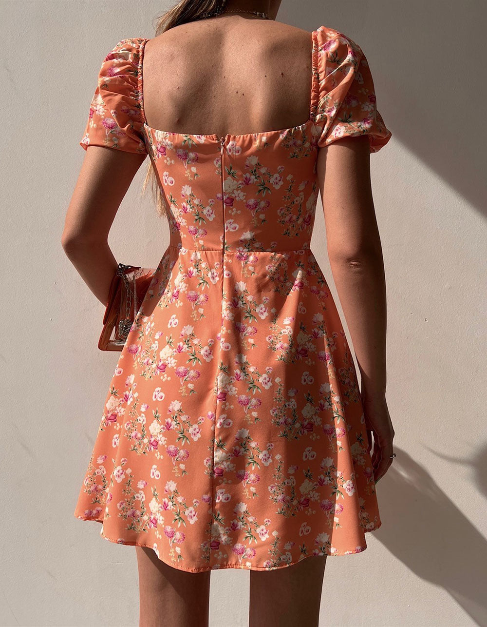 Disty Floral Print Slits V-Neck Short A Line Dresses