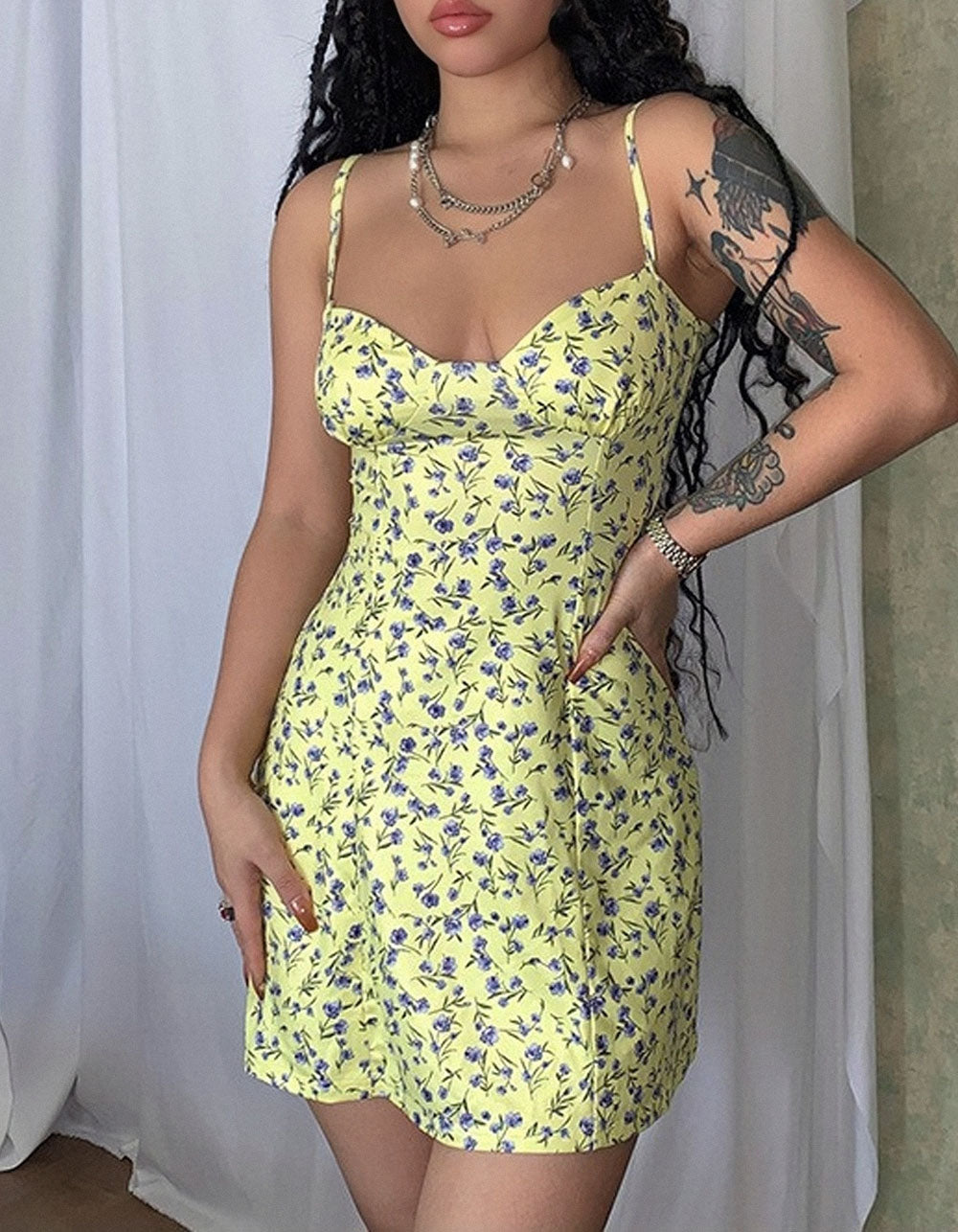 Embrace timeless style with this elegant A-line dress, featuring disty floral prints, backless design, and mid-waist fit. Made of lightweight polyester and spandex this sleeveless dress is sure to be your go-to for casual and formal occasions. Available in yellow, green and red, express yourself with a comfortable, flattering look.