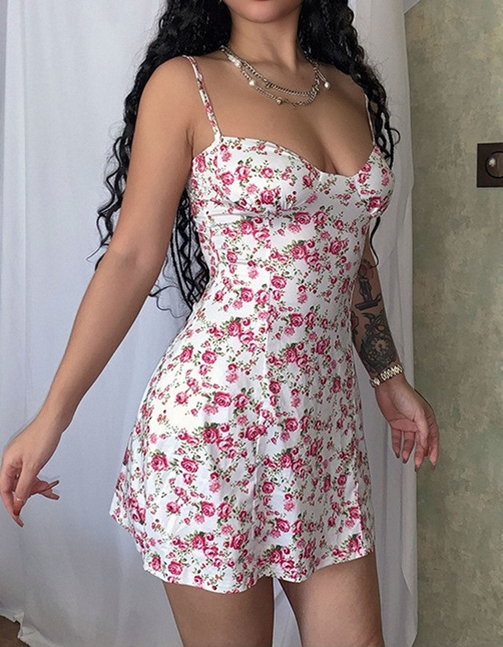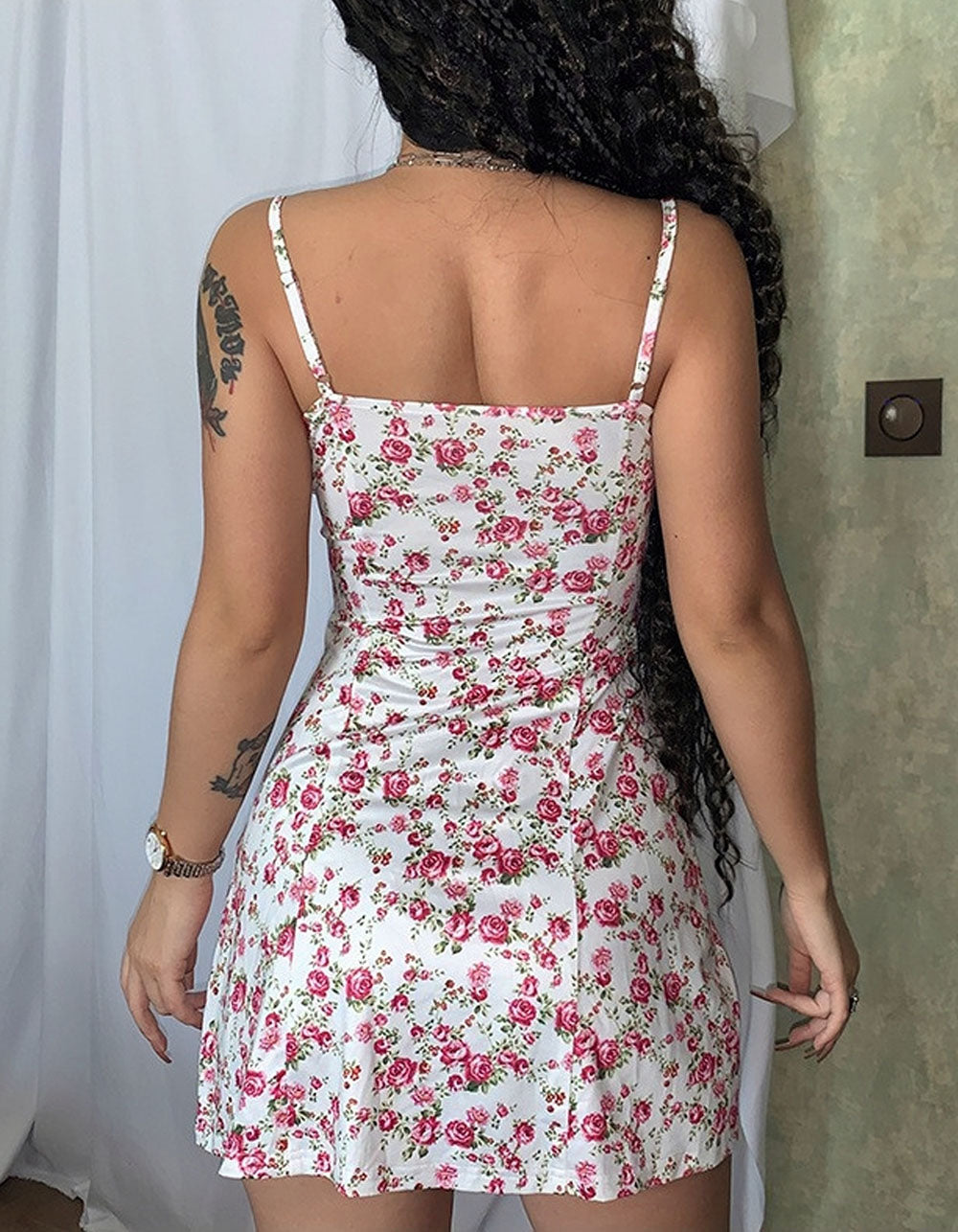 Disty Floral Strap Backless Short A-Line Dresses