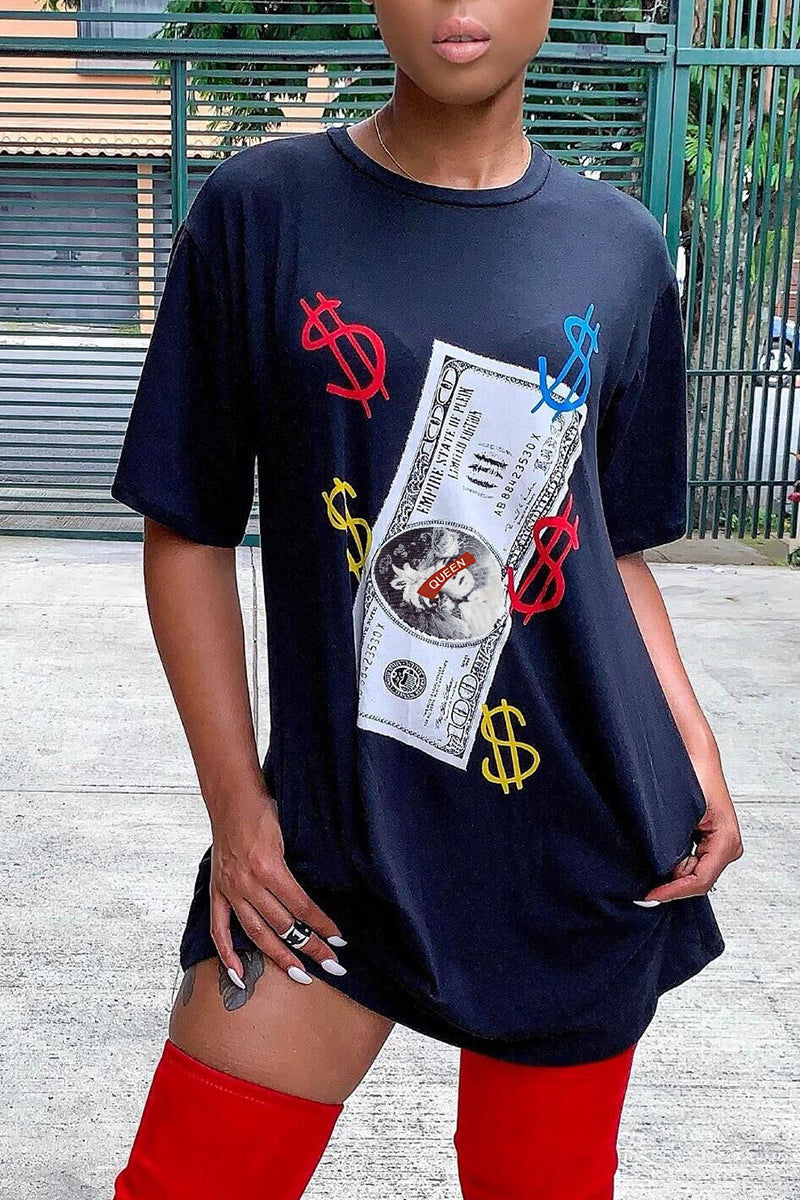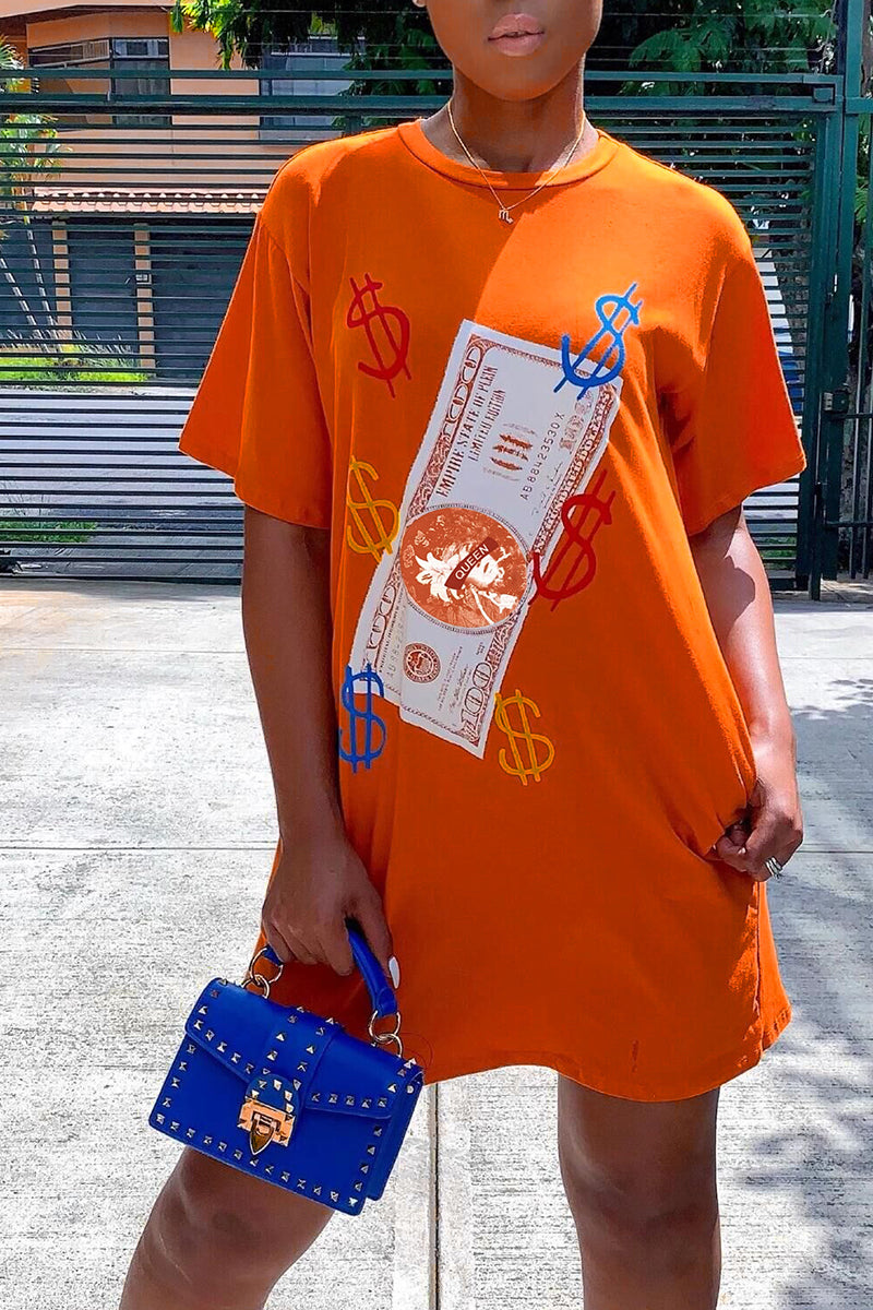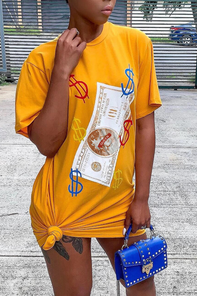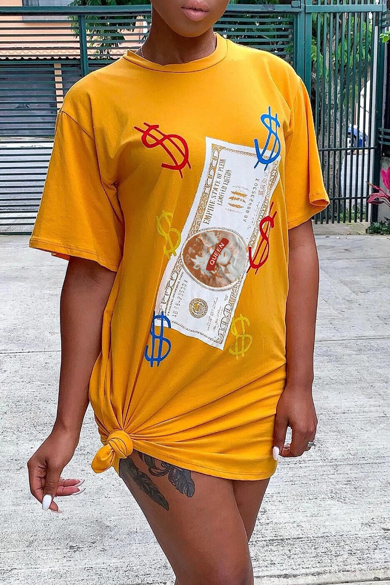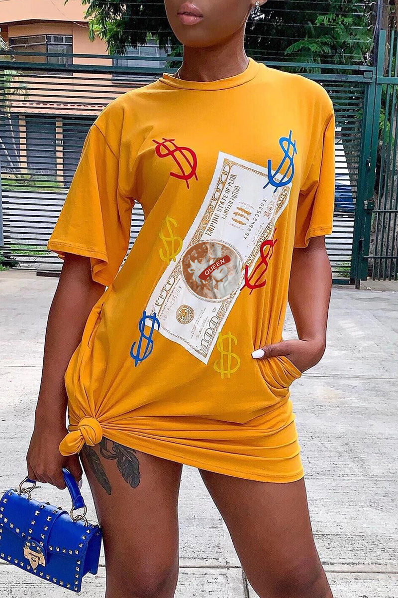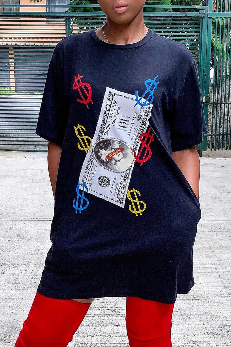 Dollar Graphic Slant Pocket Tee Dress