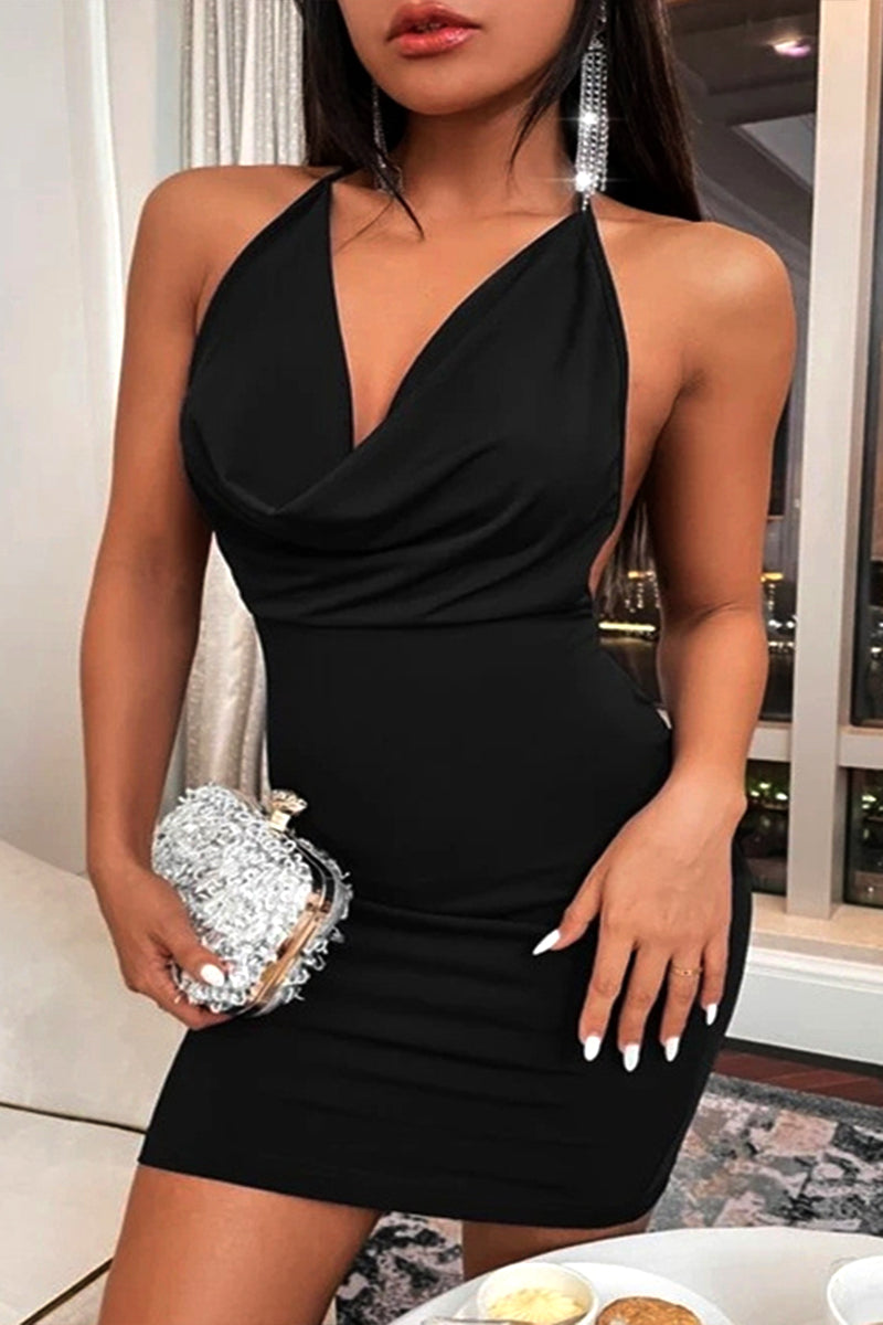 Draped Ruched Backless Halter Mini Dress