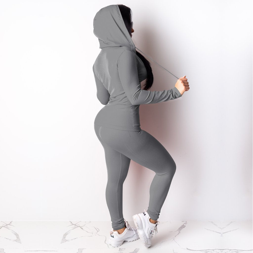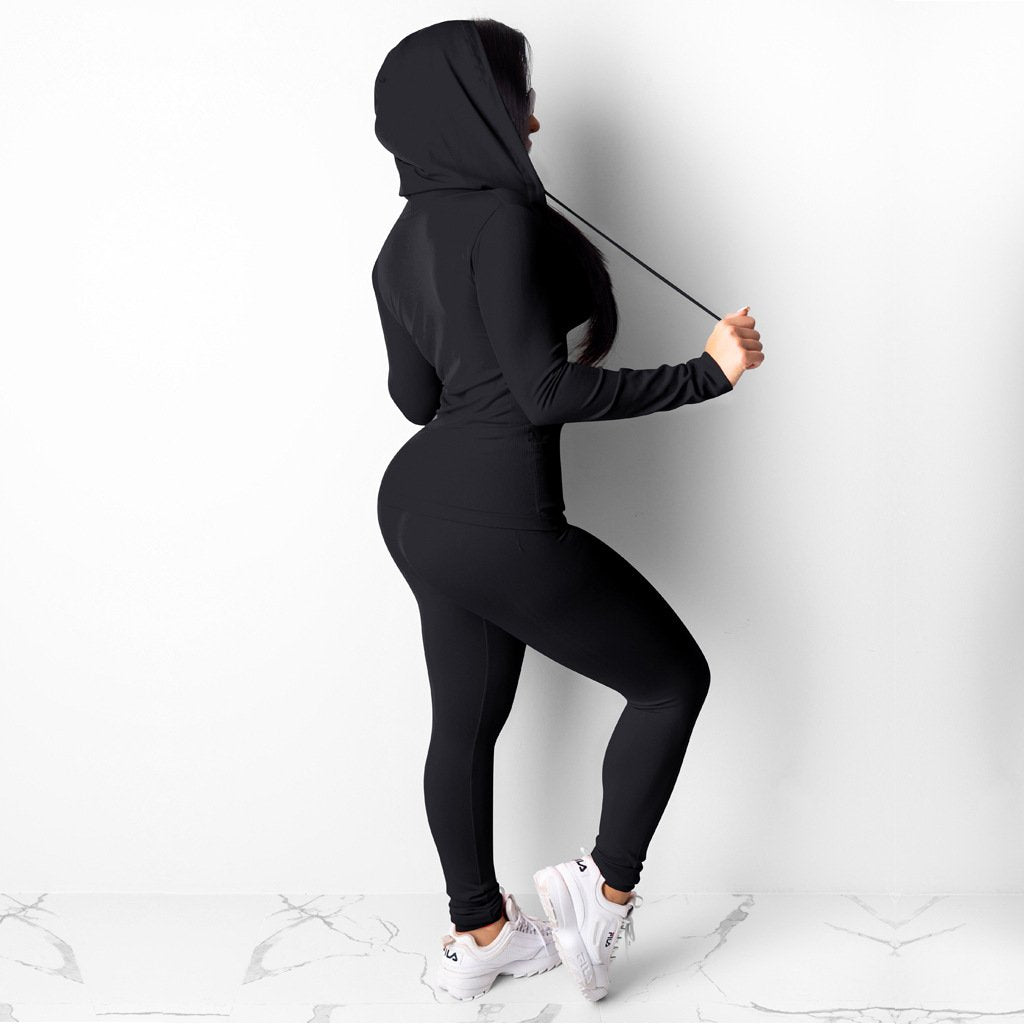 Drawstring Detail Pocket Front Hooded Top & Pants Set