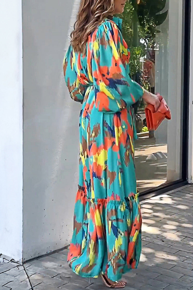 Elegant Geometric Bandage Turndown Collar Dresses
