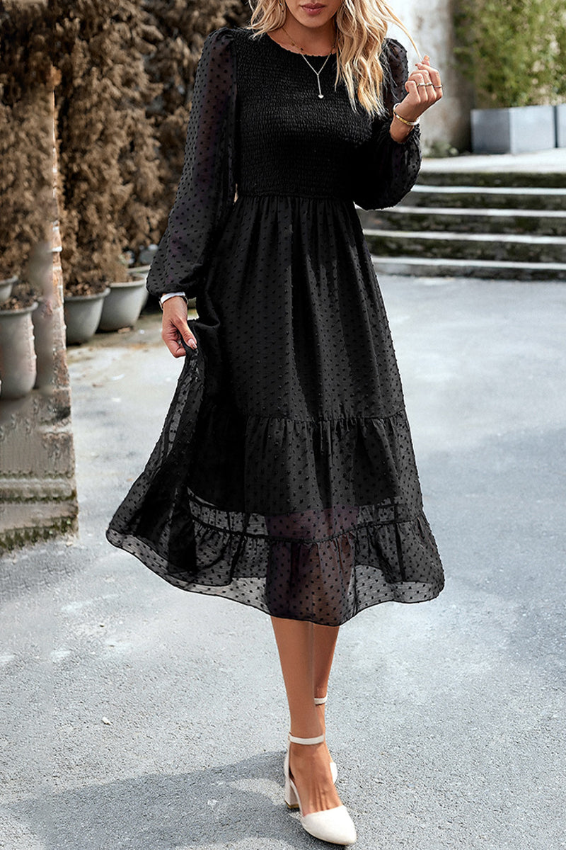 Elegant Solid Patchwork O Neck A Line Dresses