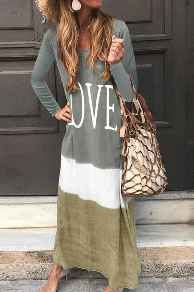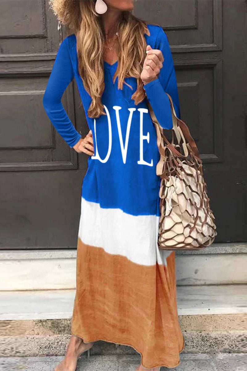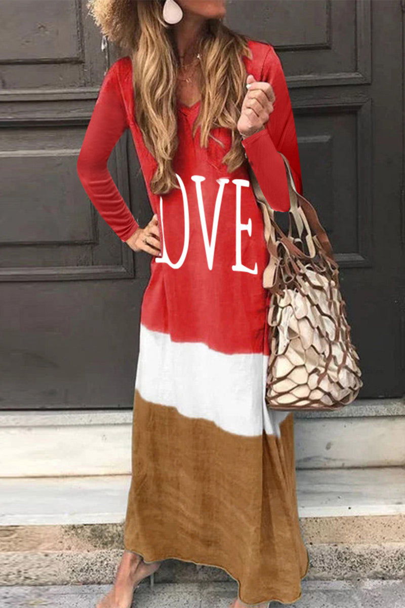 Fashion Casual Print Patchwork Contrast V Neck Long Sleeve Dresses