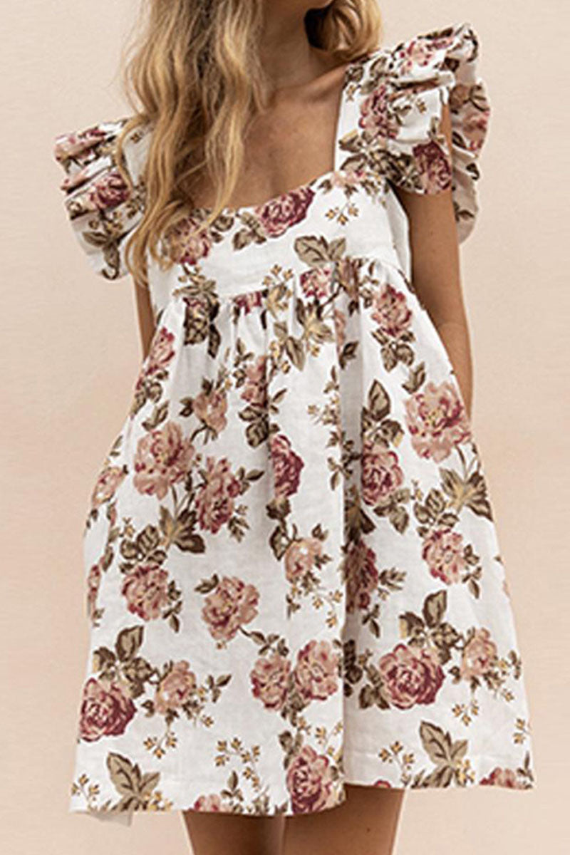 Fashion Casual Print Patchwork Square Collar Princess Dresses(4 Colors)