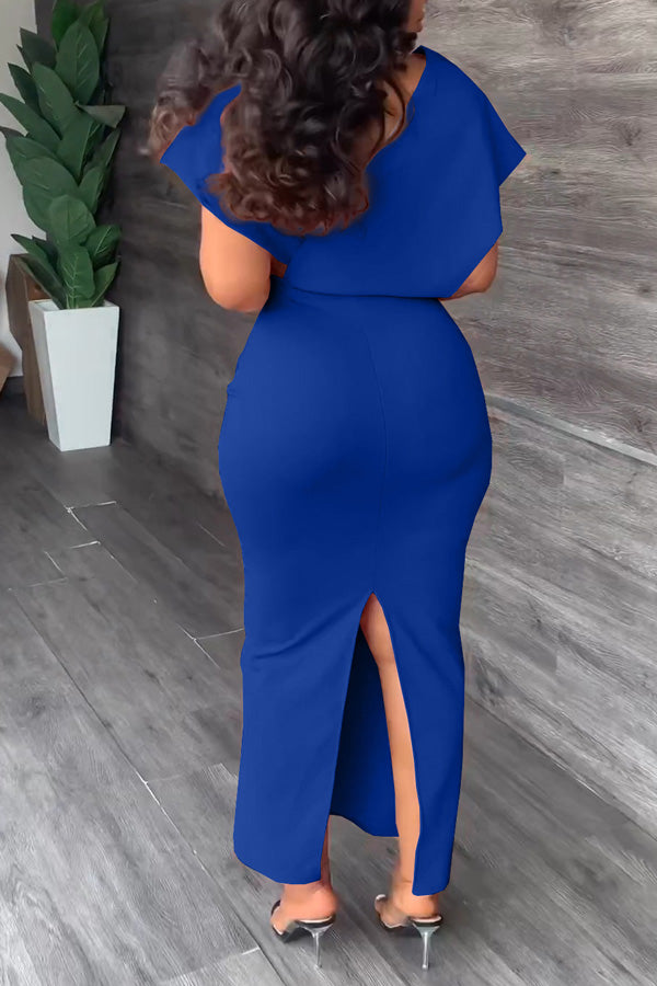 Fashion Casual Slit V Neck Short Sleeve Multicolor Dress