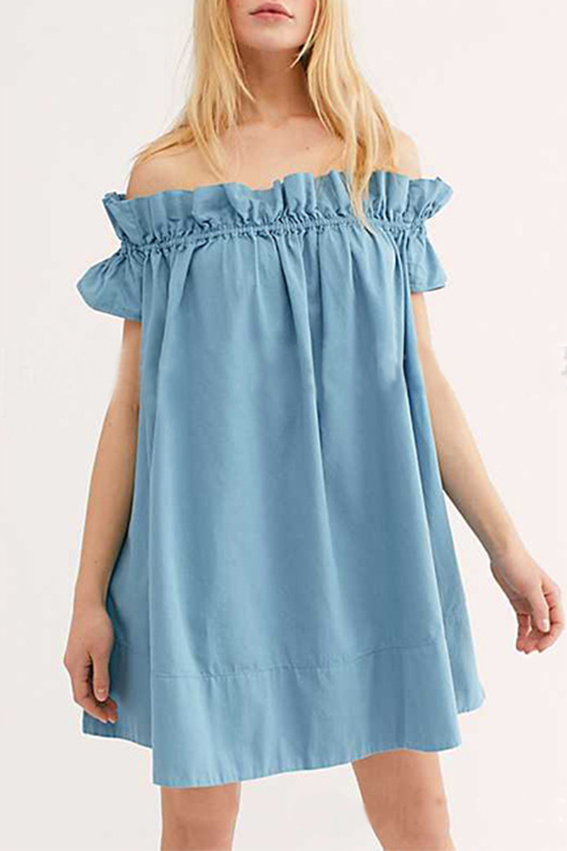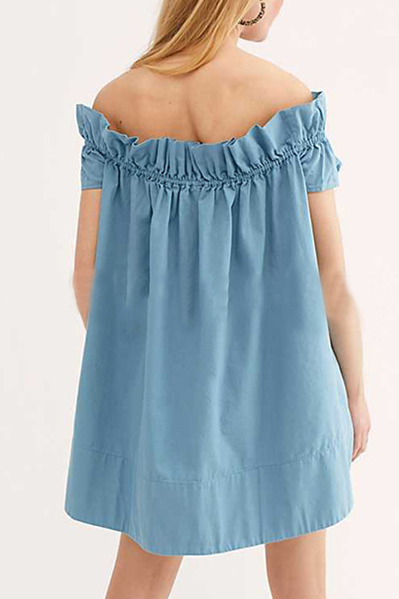 Fashion Casual Solid Flounce Off the Shoulder Princess Dresses