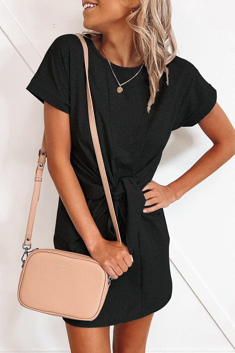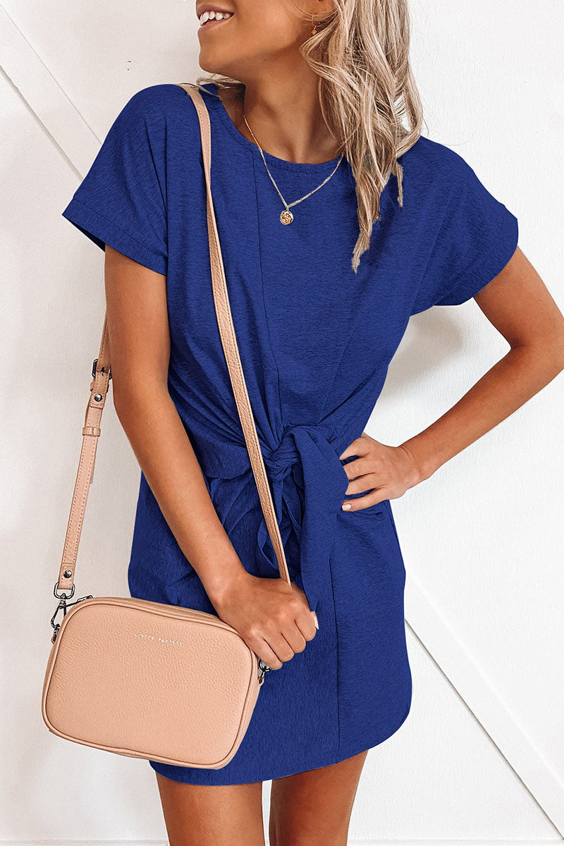 Casual Solid Frenulum O Neck Pencil Skirt Mini Dresses(6 Colors)