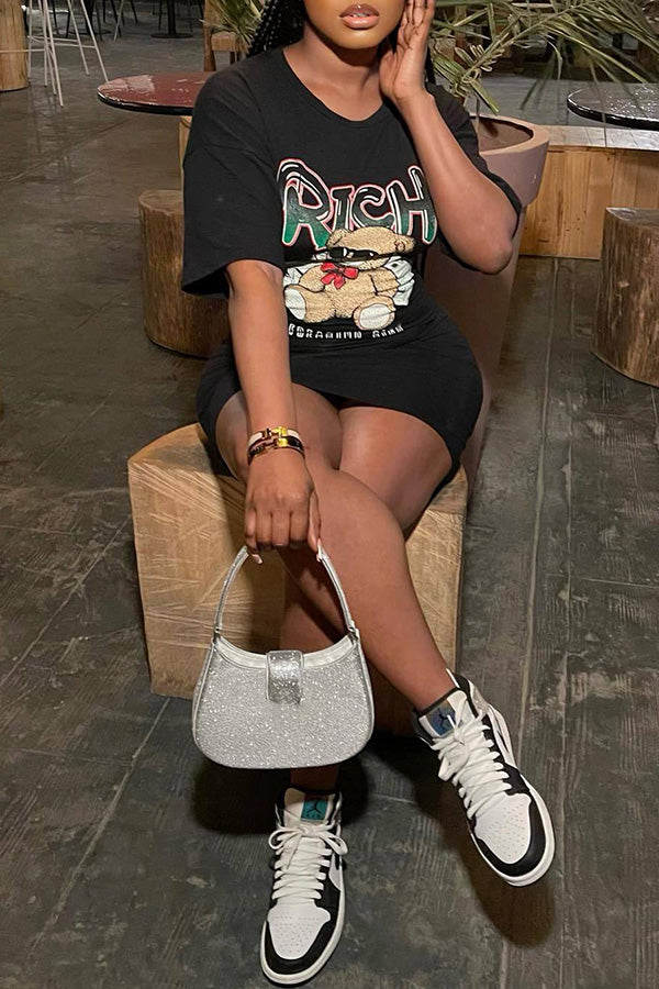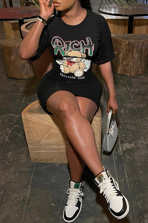 Fashion Hot Panda Hot Print Print Hip Cover Short Sleeve Dress