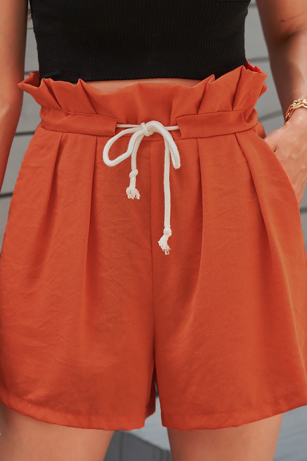 Fashion Orange Frilled Drawstring Waist High Rise Shorts