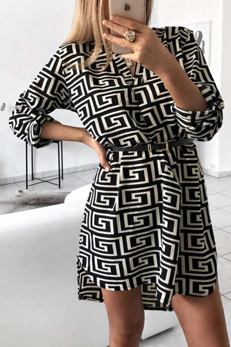 Fashion Print Turndown Collar Straight Dresses(6 Colors)