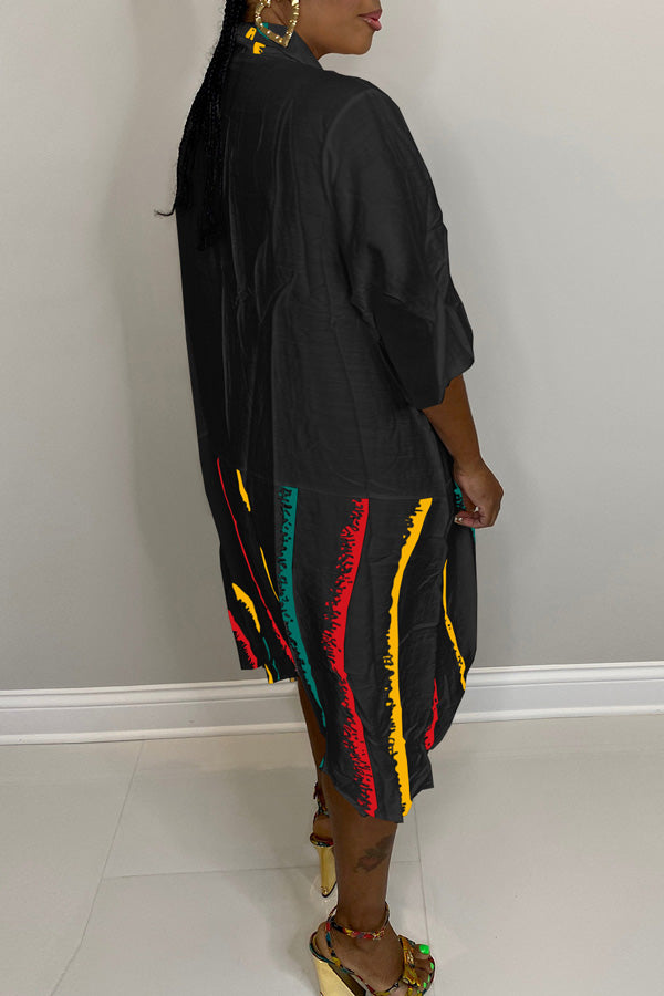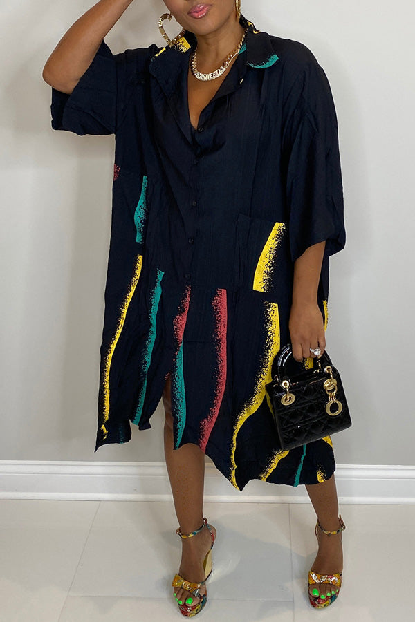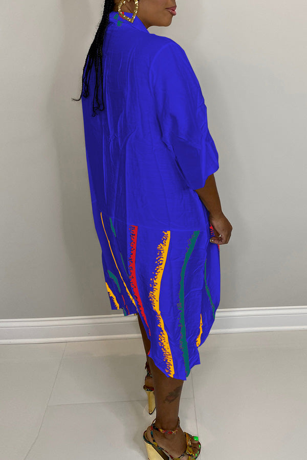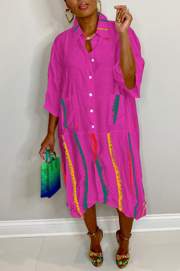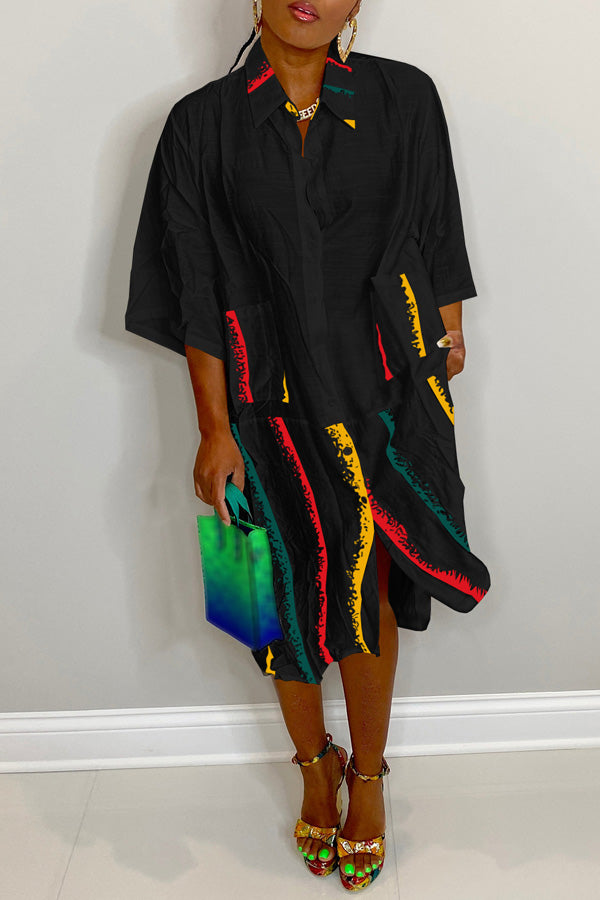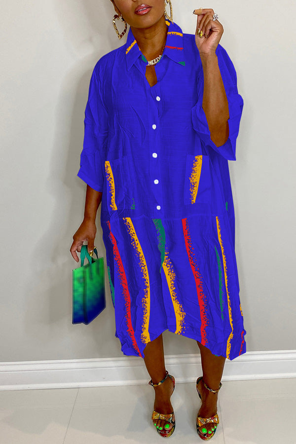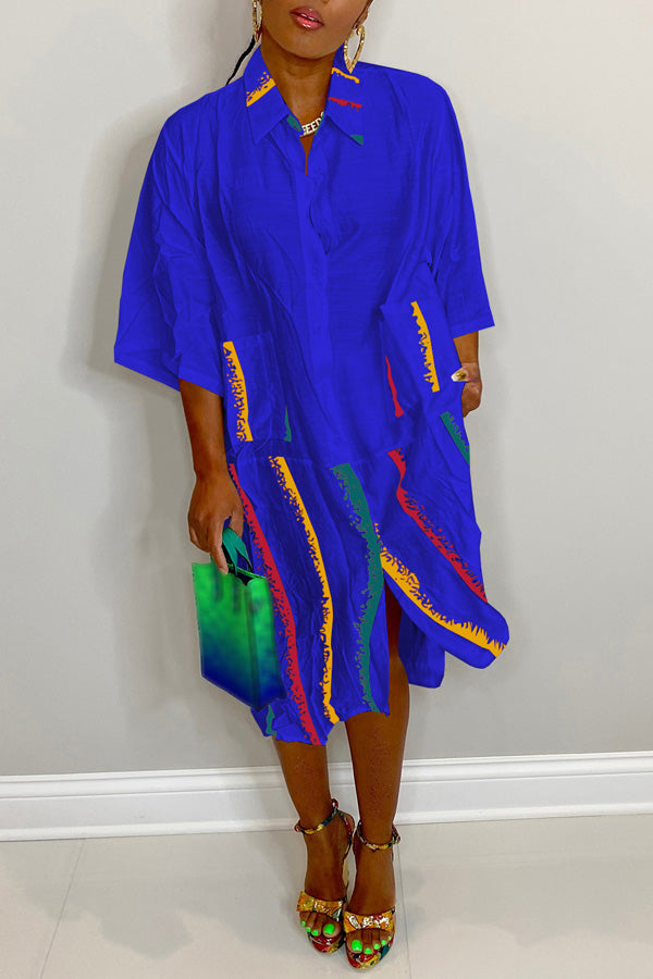 Fashion Printed Stitching Long Sleeve Shirt Pocket Dress