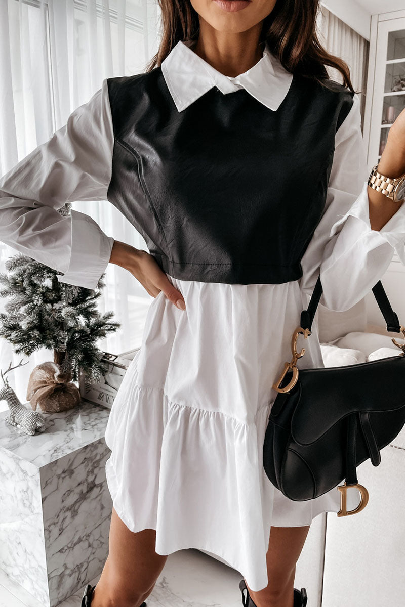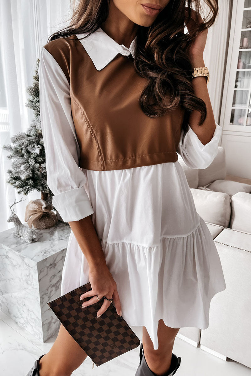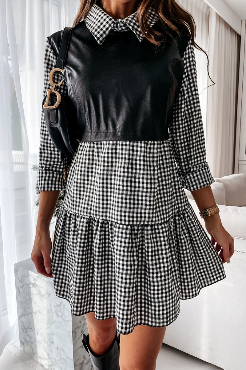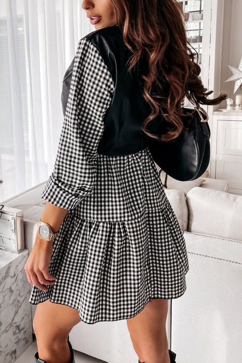 Fashion Sexy Plaid Solid Patchwork Shirt Collar Shirt Dress Dresses(3 Colors)