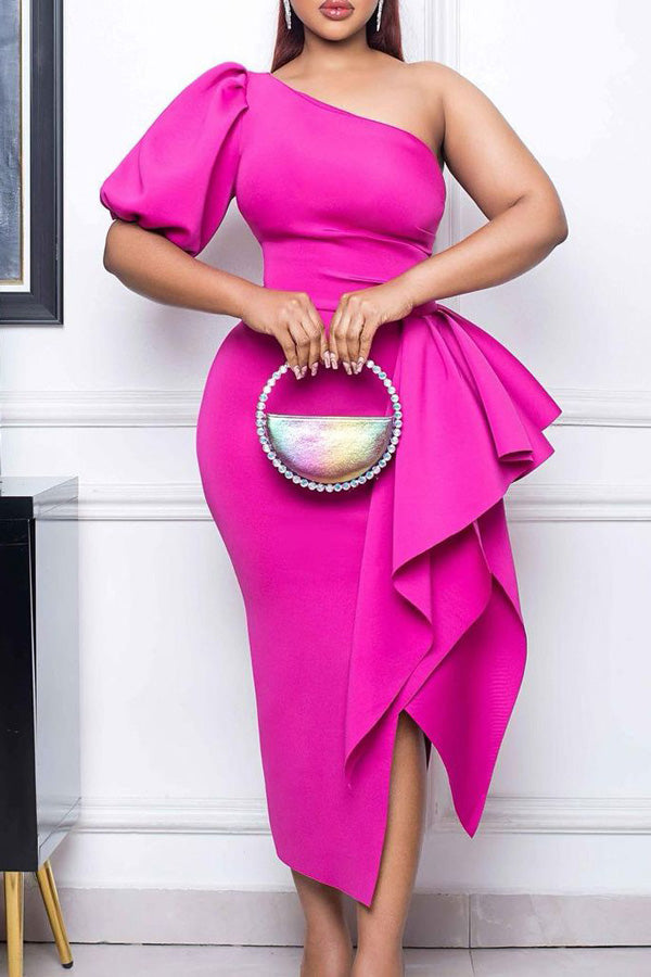 Fashion Slant Neck Slit Ruffle Dress Sexy Dress