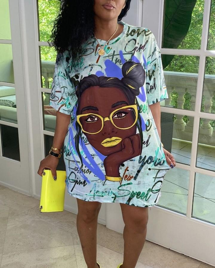 Figure & Digital Floral Print Loose Casual Maxi Dress