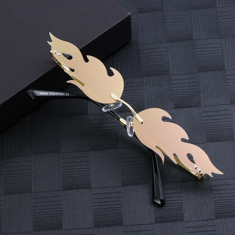 Fire Flame Rimless Wave Mirror Lens Narrow Cat Eye Sunglasses