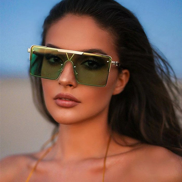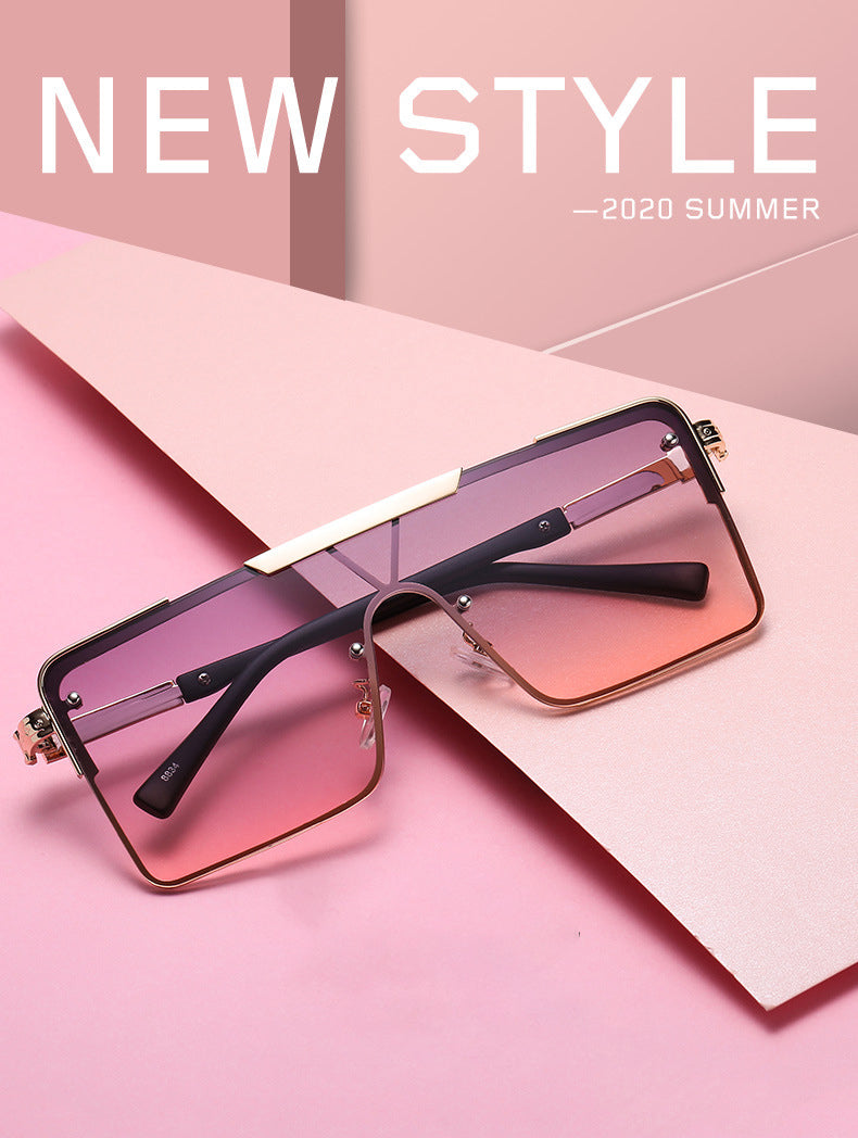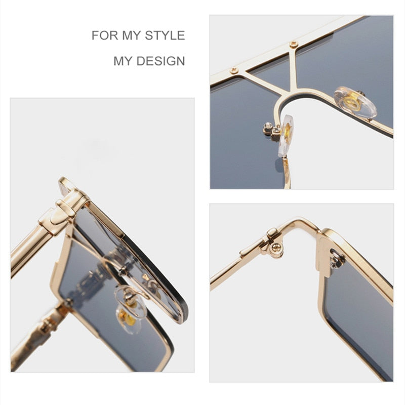 Flat Bar Top Gradient Steampunk Square Sunglasses