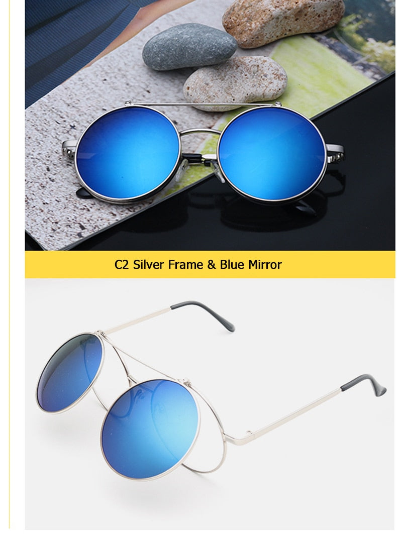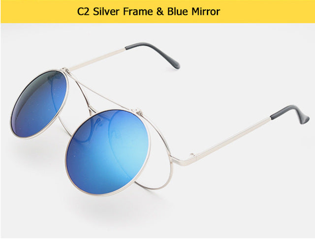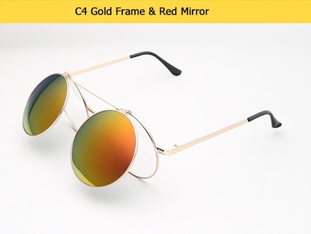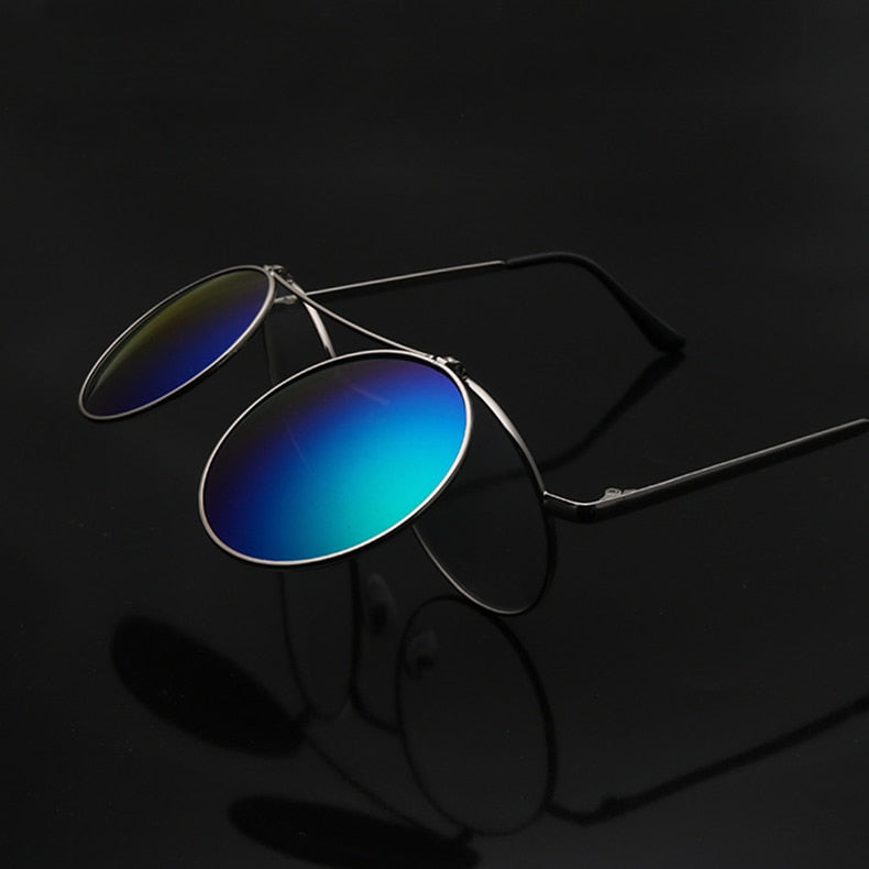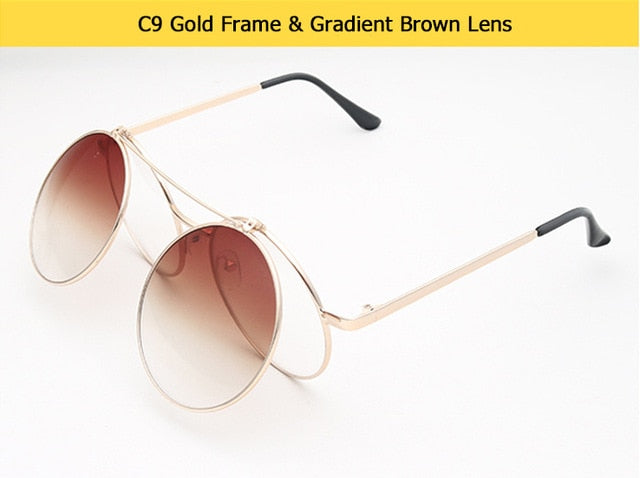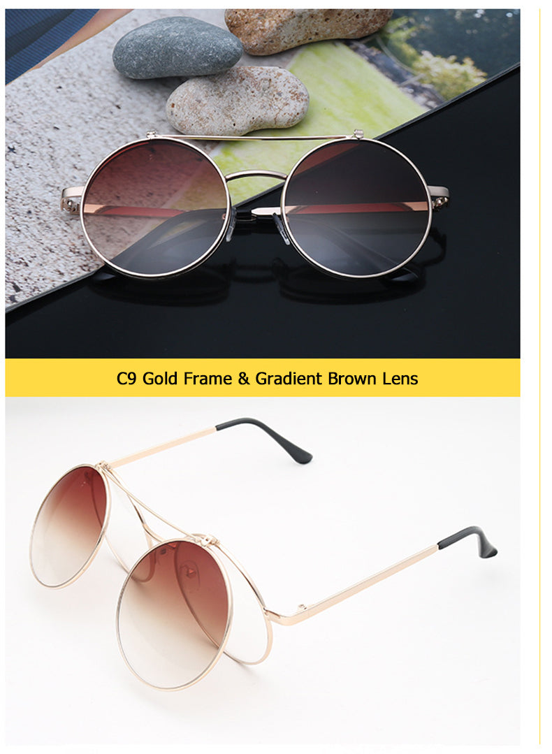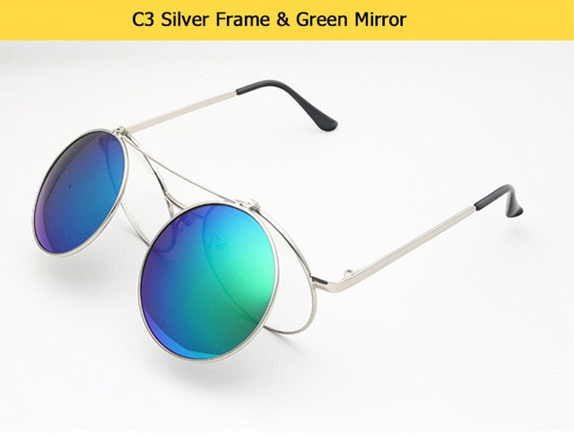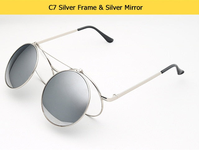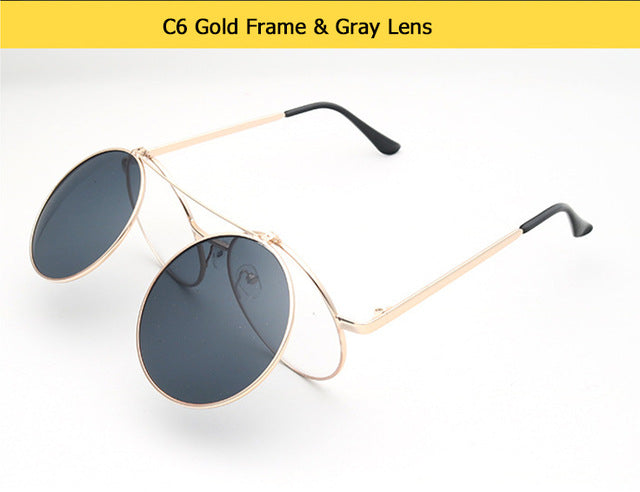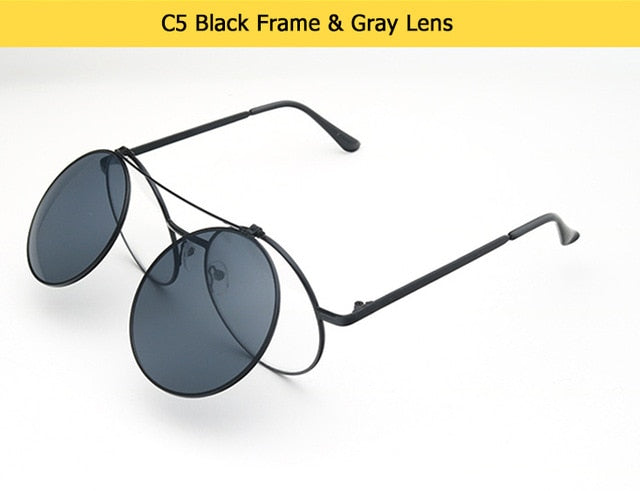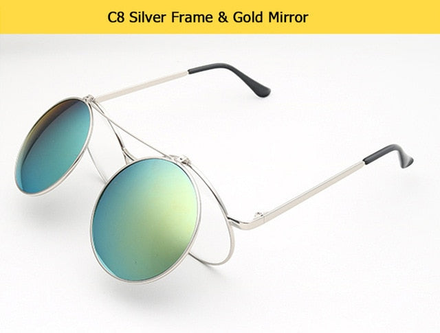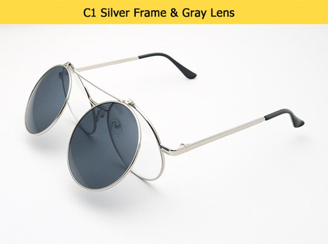 Flip Up Clamshell Classic Round Design Retro Sunglasses