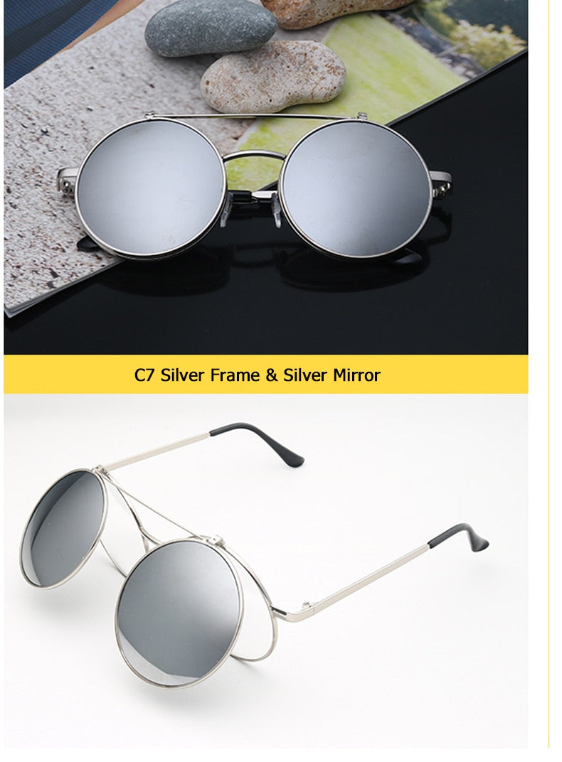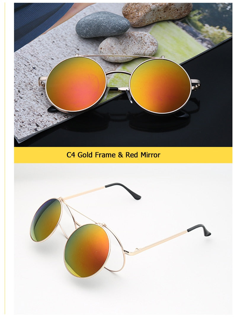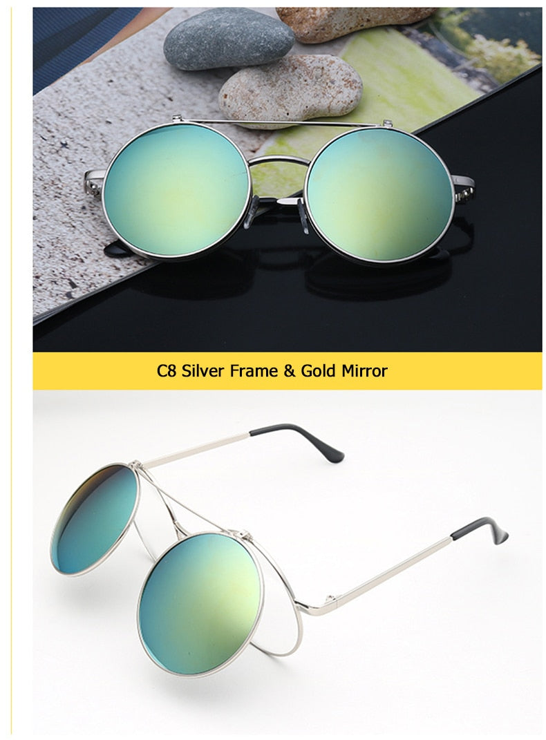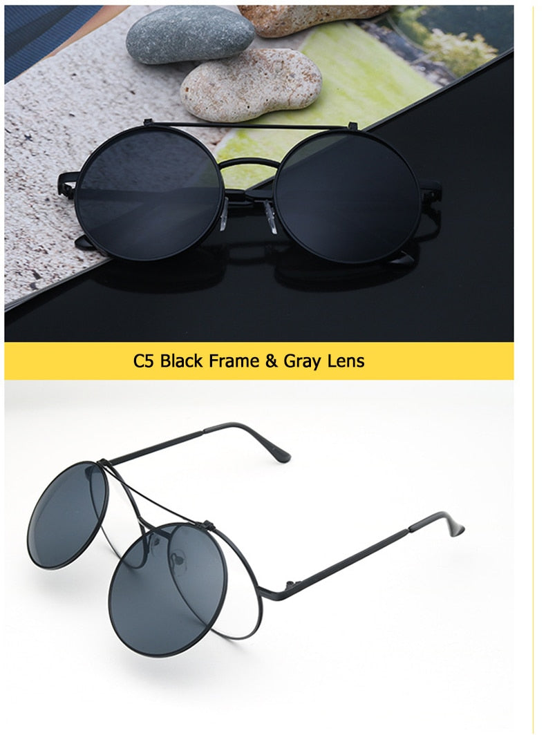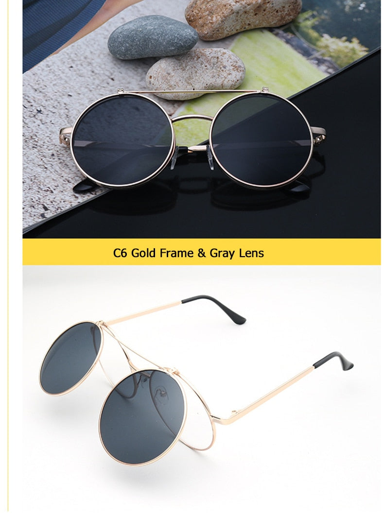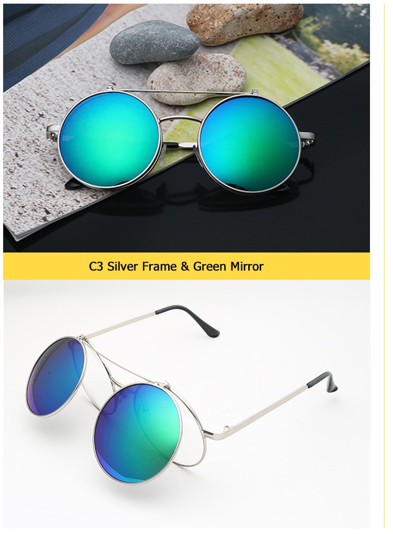 Flip Up Clamshell Classic Round Design Retro Sunglasses