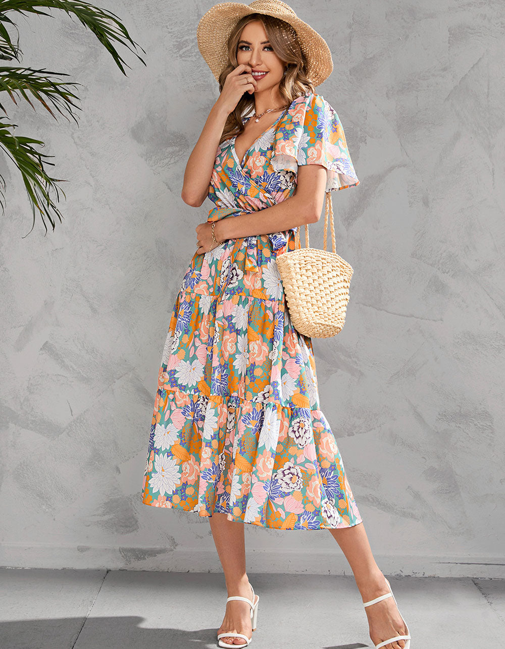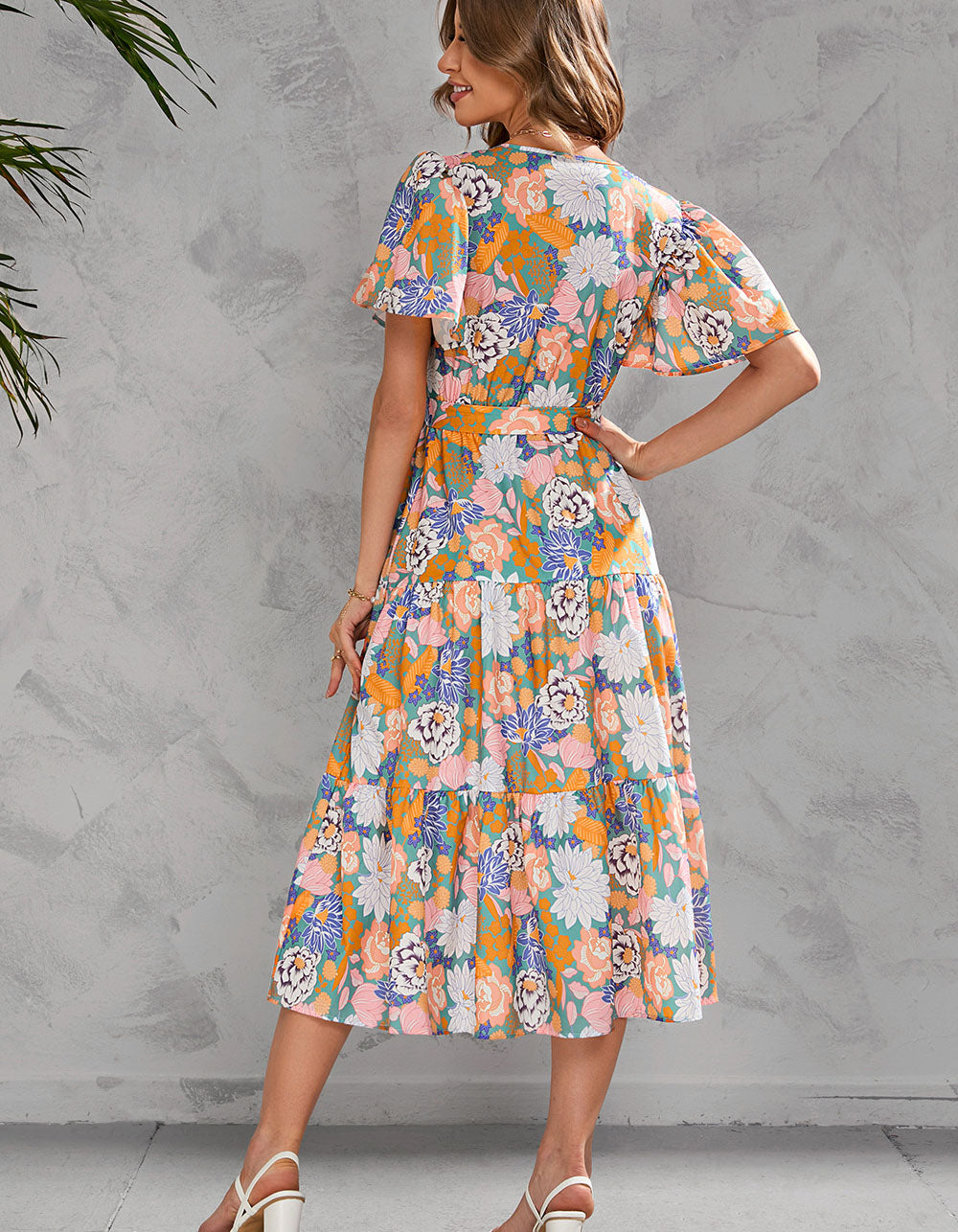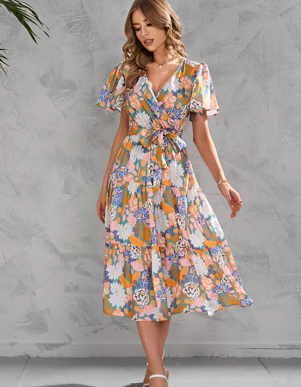 This Floral Printed V Neck Short Sleeve Long A-Line Dress features a variety of stylish and casual elements such as V-neck, short sleeves, colorful printed pattern, ruffle hem, and elegant fit. Crafted from a blend of lightweight Polyester and Cotton, this dress is perfect for any occasion.