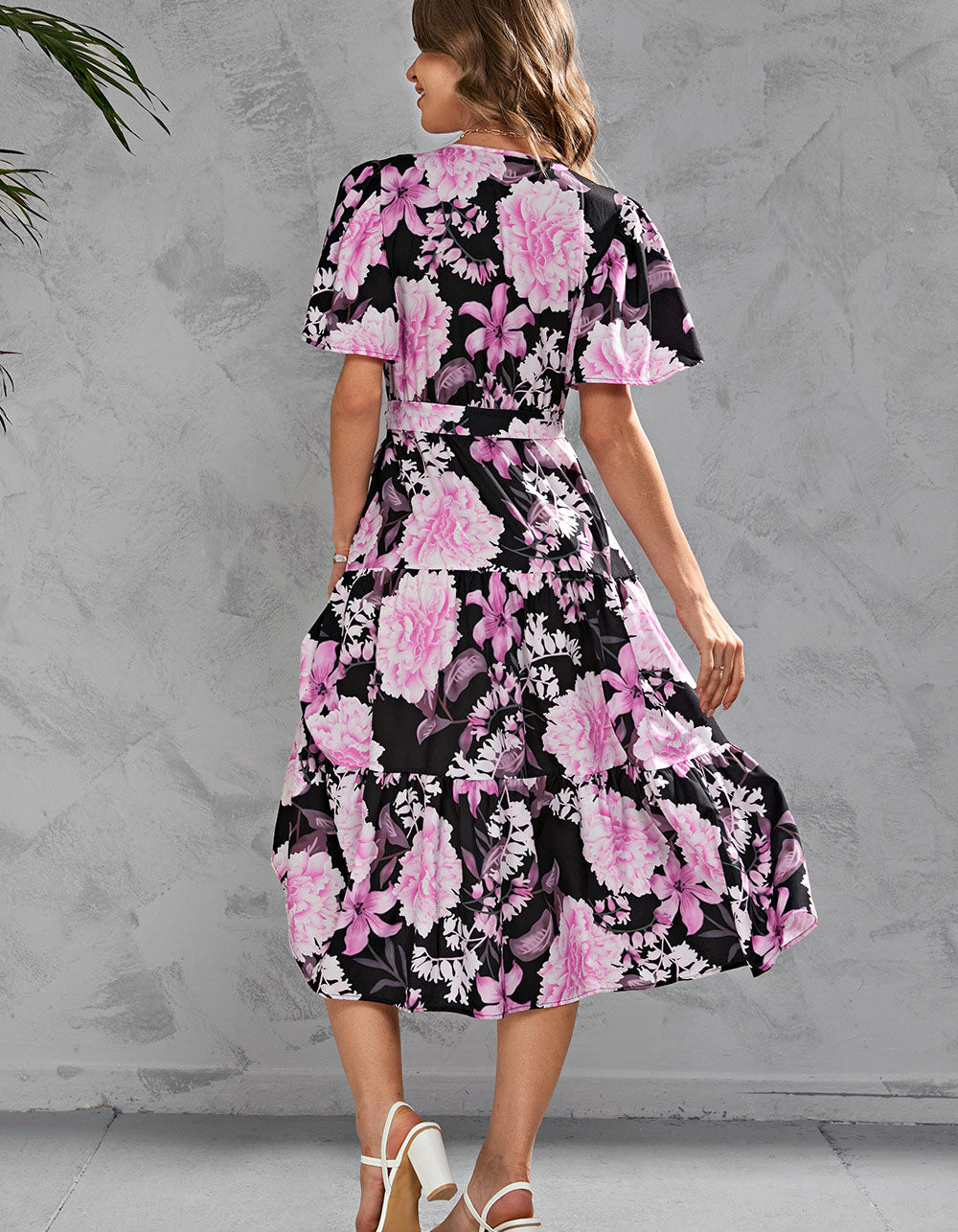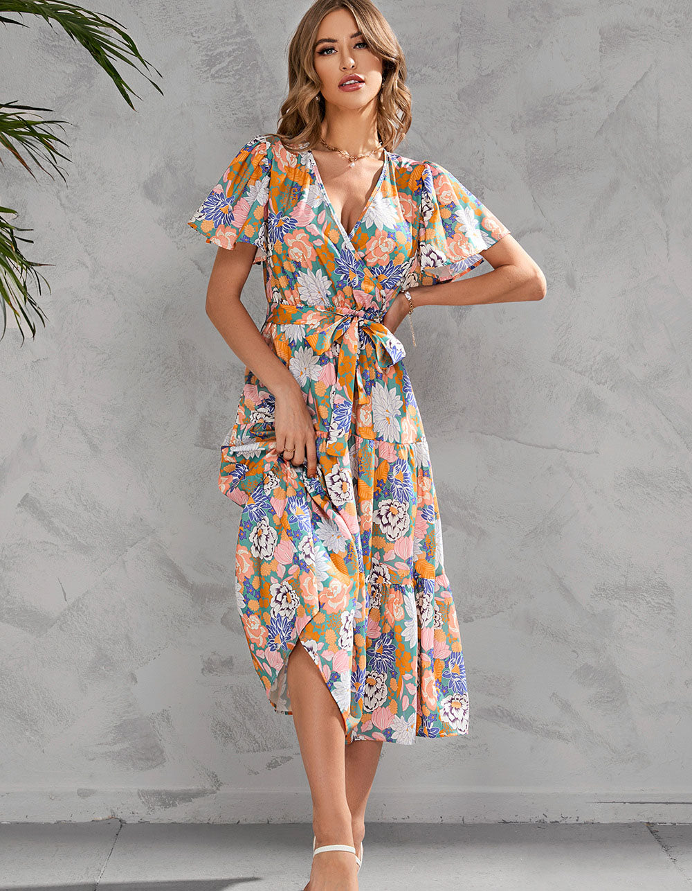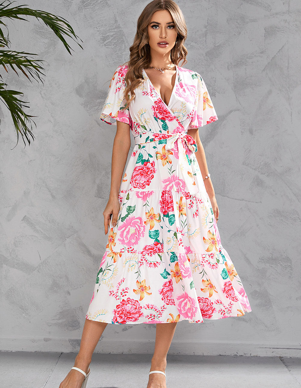 This Floral Printed V Neck Short Sleeve Long A-Line Dress features a variety of stylish and casual elements such as V-neck, short sleeves, colorful printed pattern, ruffle hem, and elegant fit. Crafted from a blend of lightweight Polyester and Cotton, this dress is perfect for any occasion.
