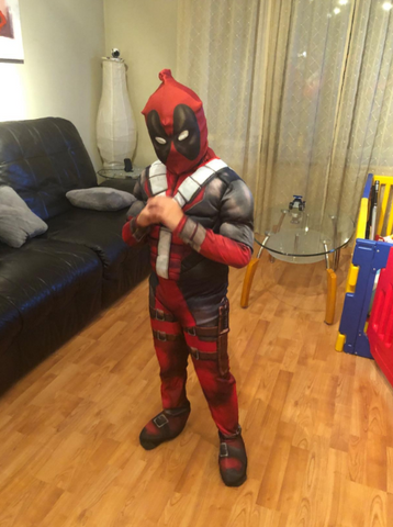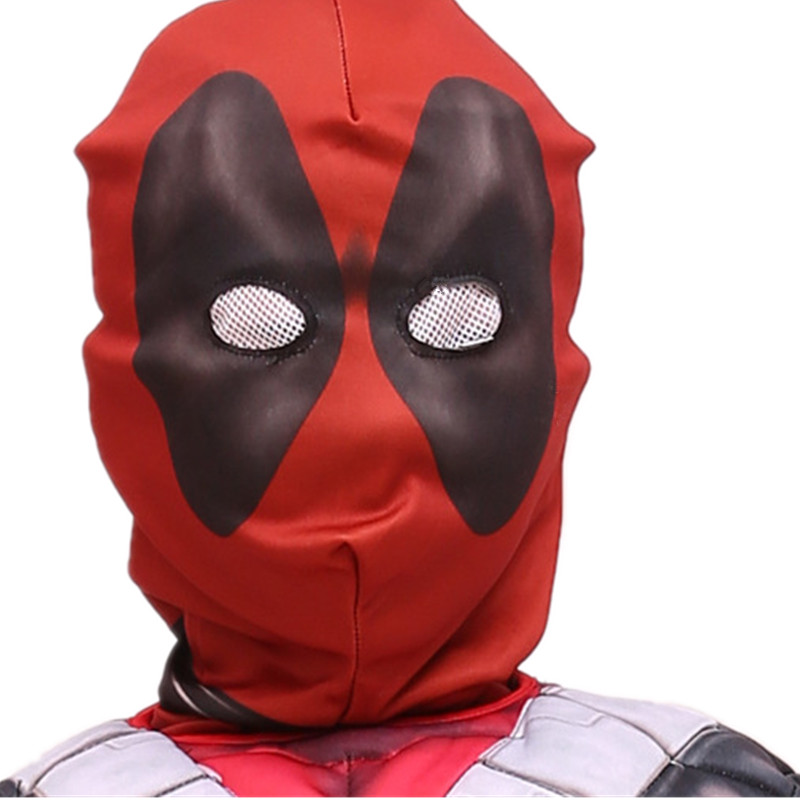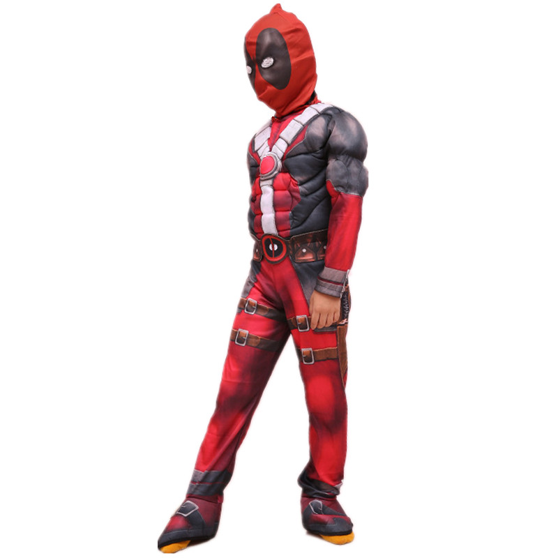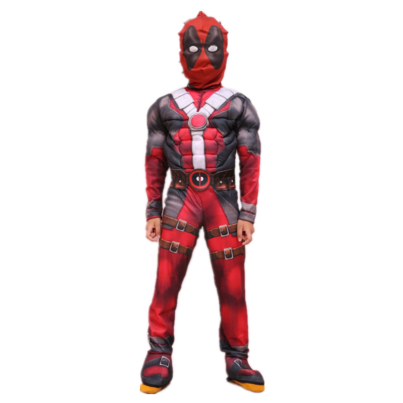 Description: Printed details and padding, put on this costume transform into the Deadpool, the costume including a jumpsuit, headwear and a belt.