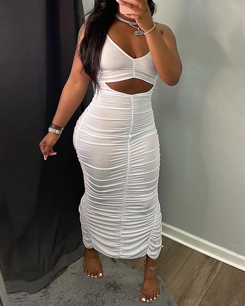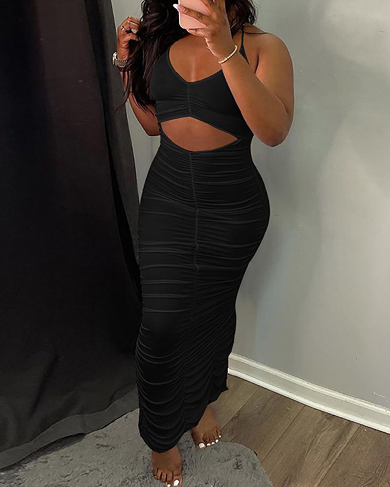 Halter Backless Cutout Ruched Slit Maxi Dress
