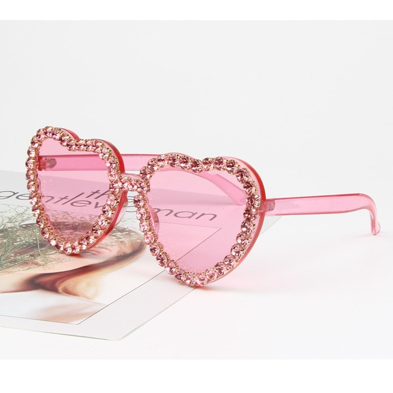 Heart Shape Rhinestone Resin Retro Sunglasses