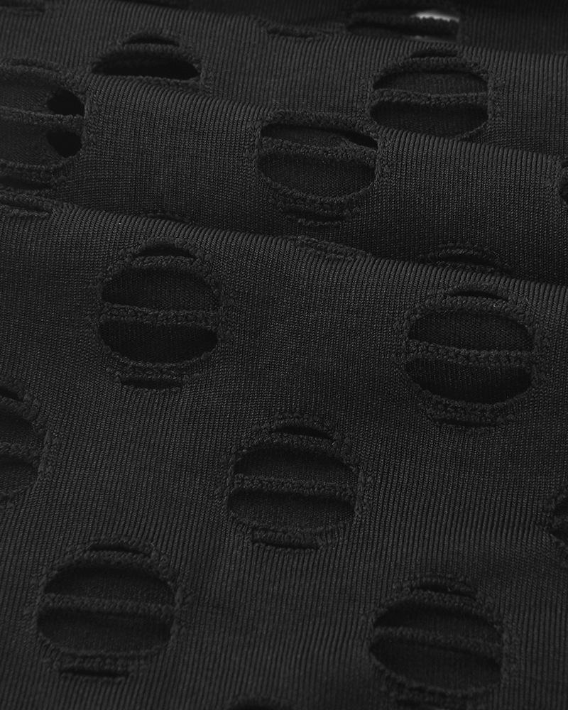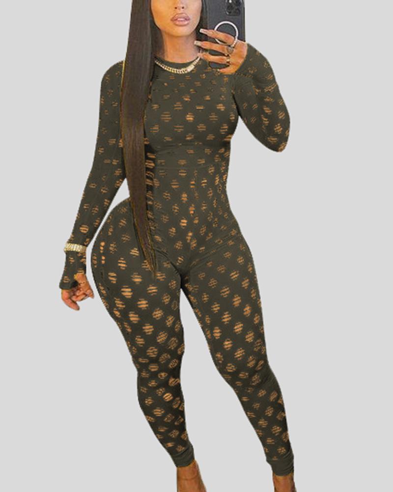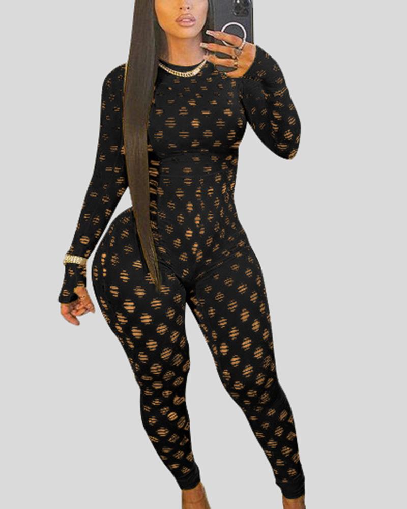 Hollow Out Zipper Back Mock Neck Casual Jumpsuit