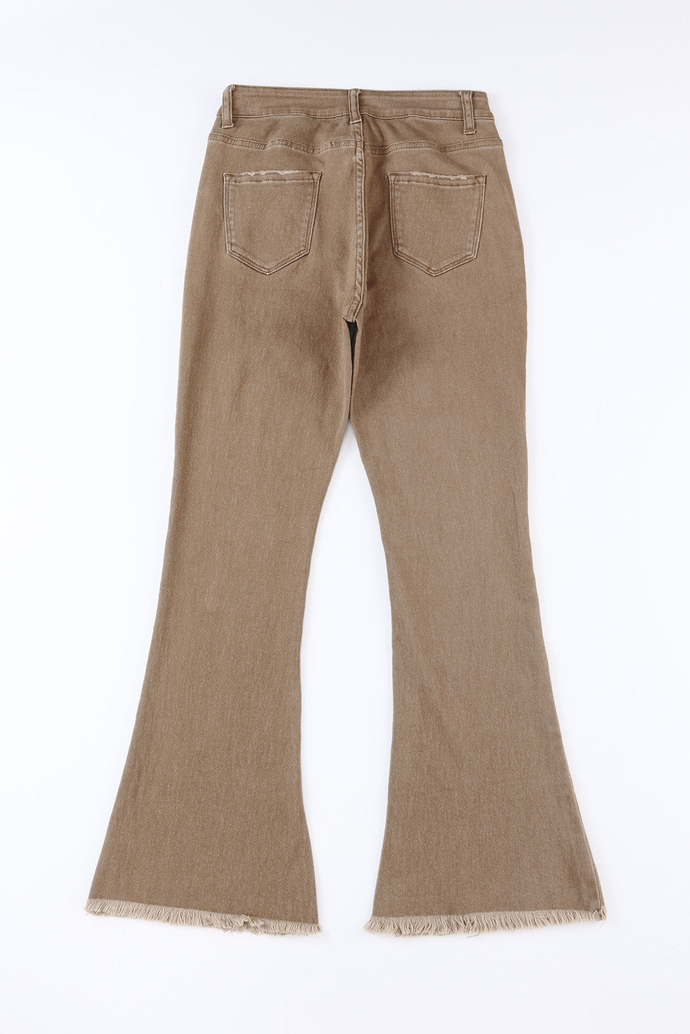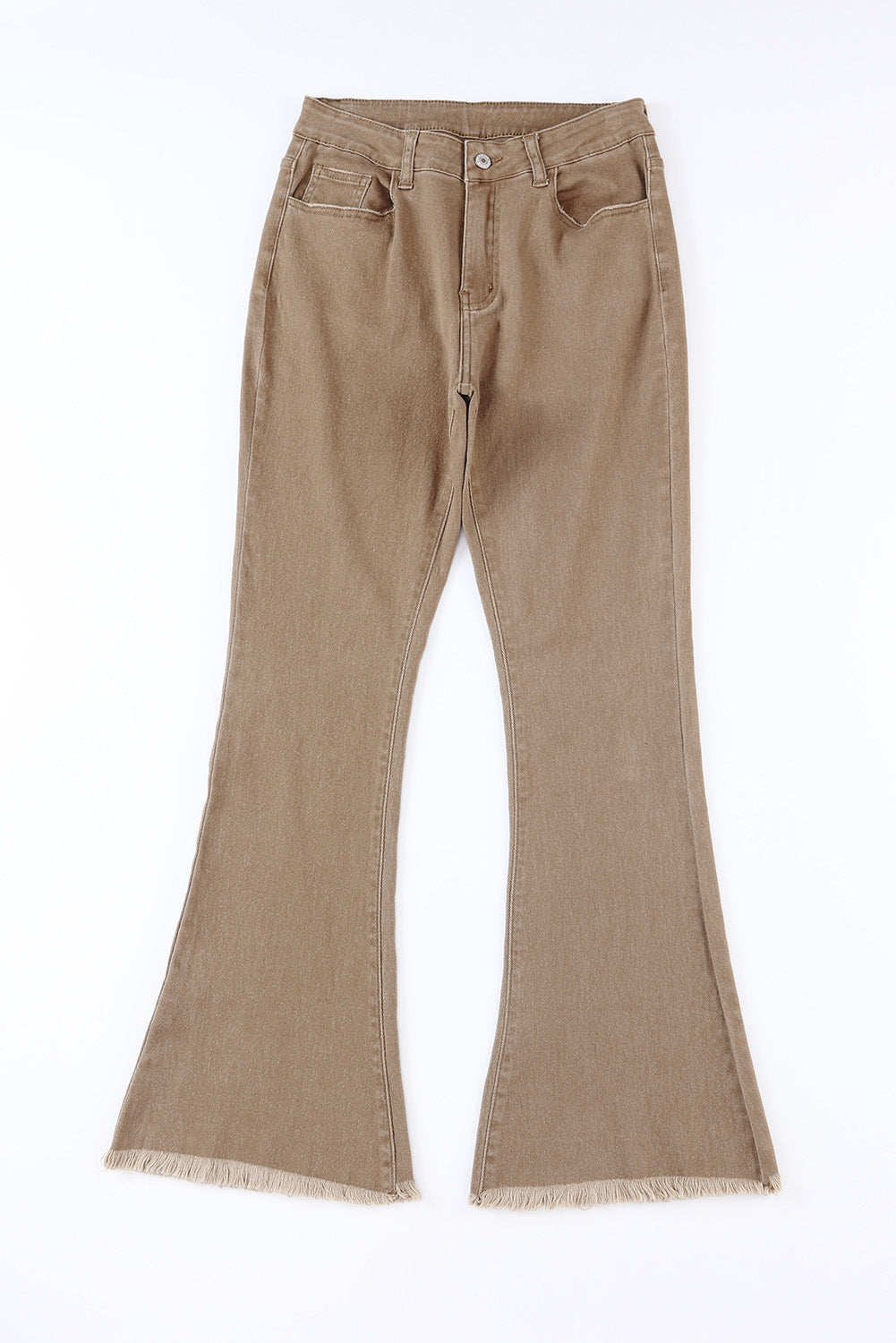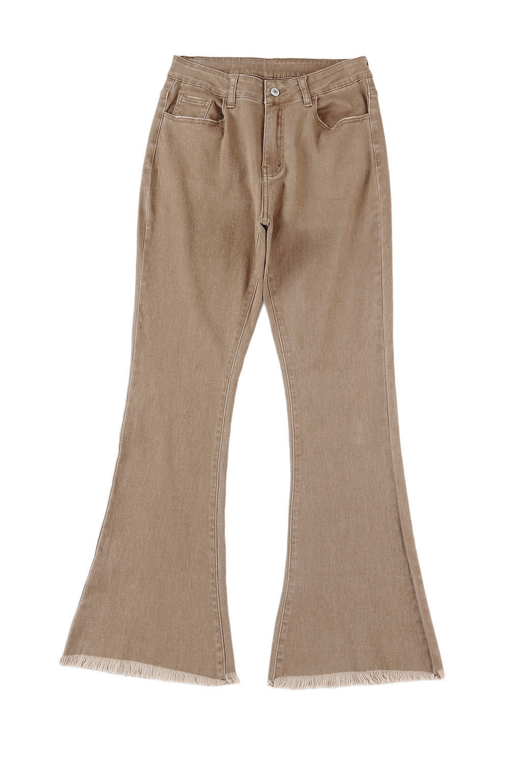 Khaki Raw Hem High Waist Flare Jeans