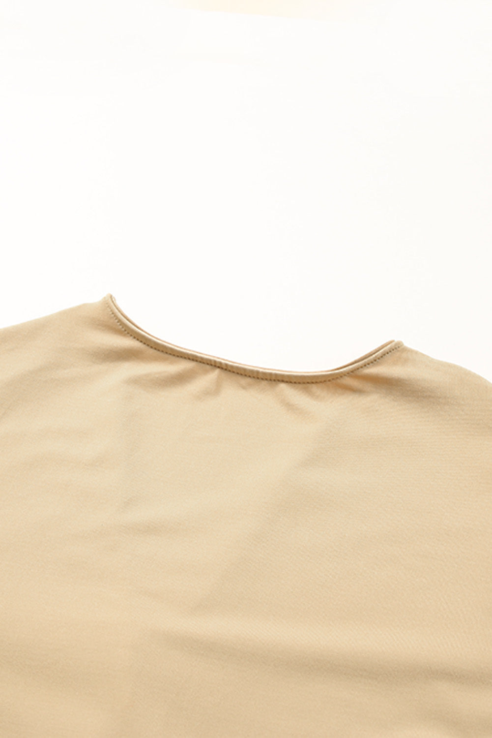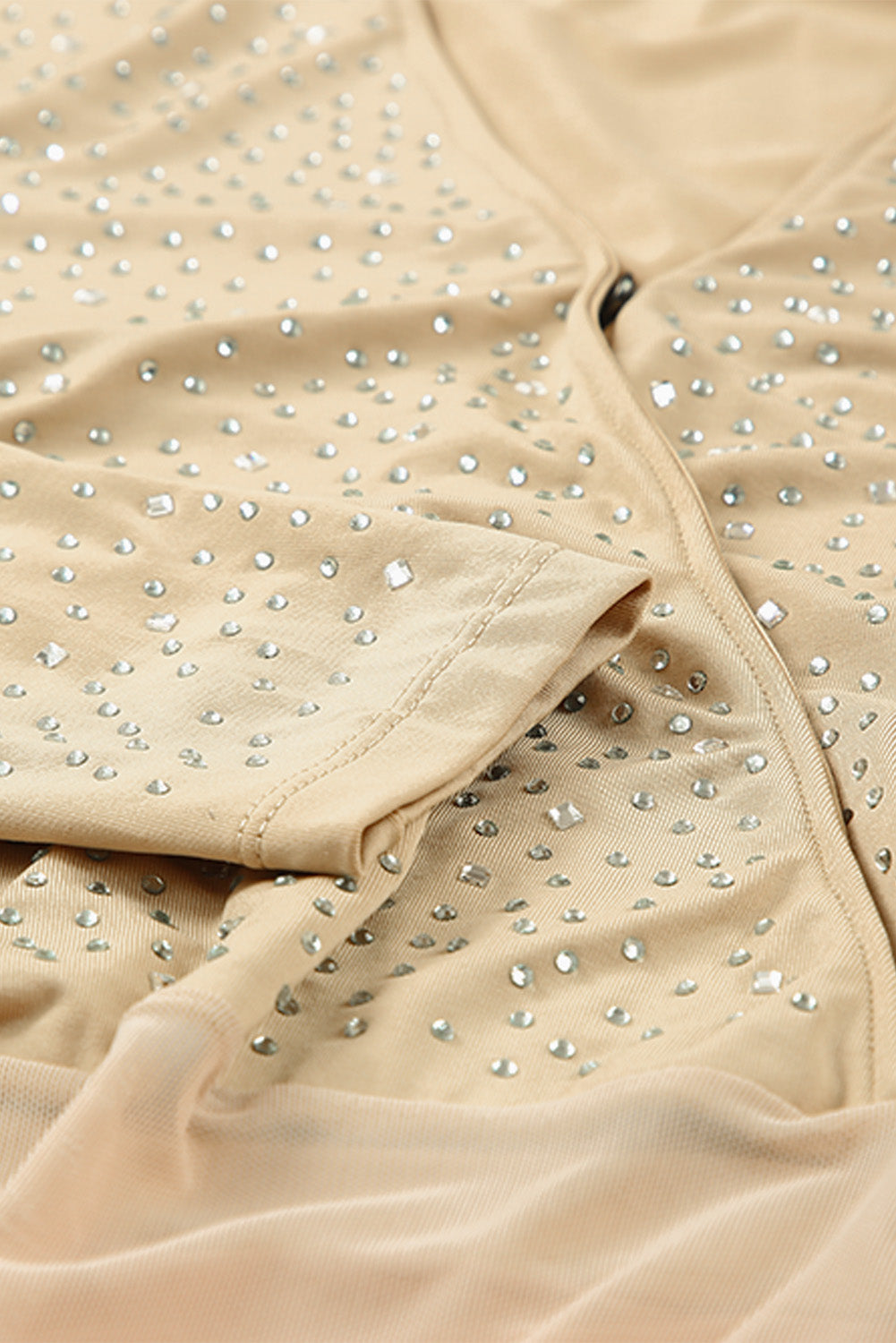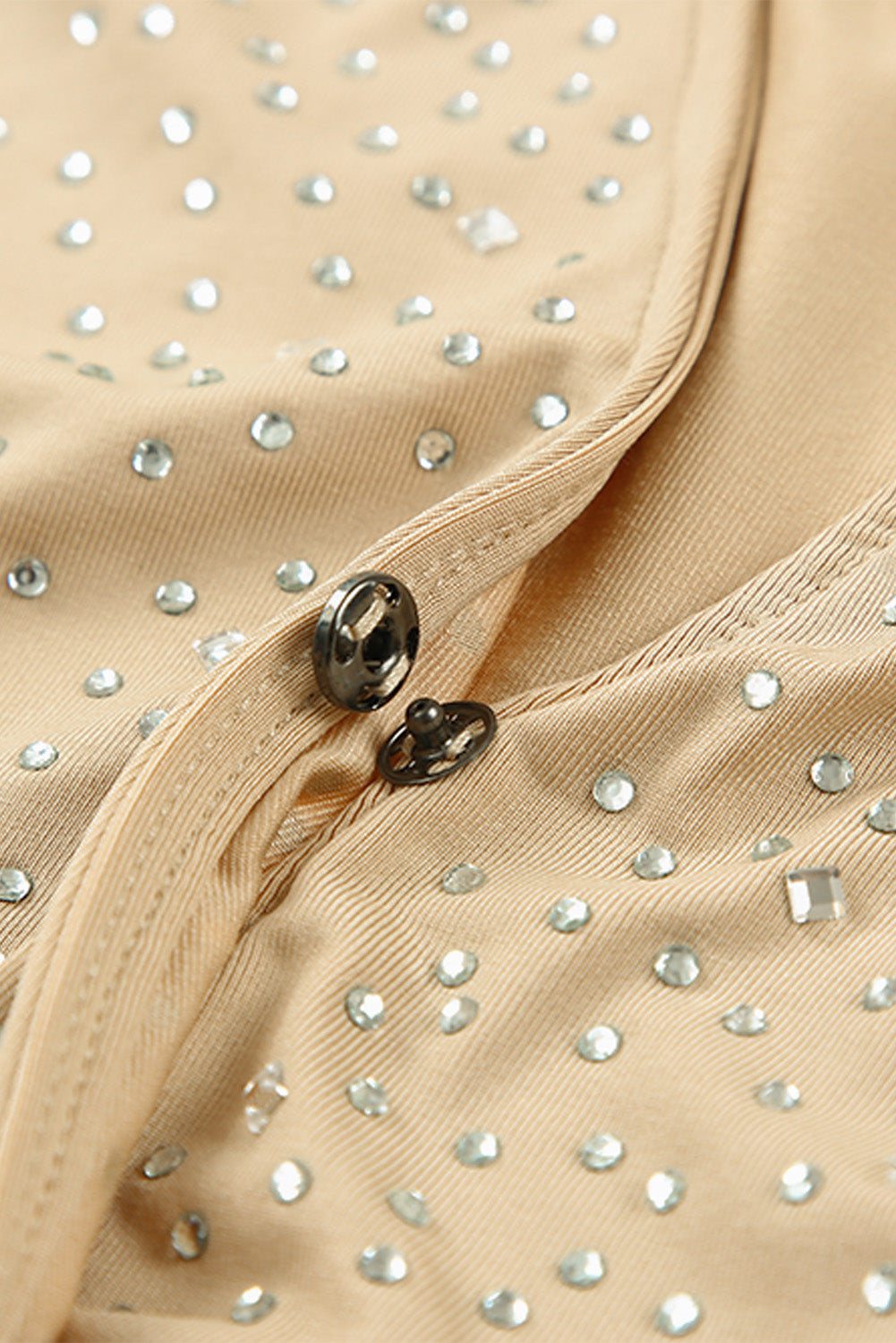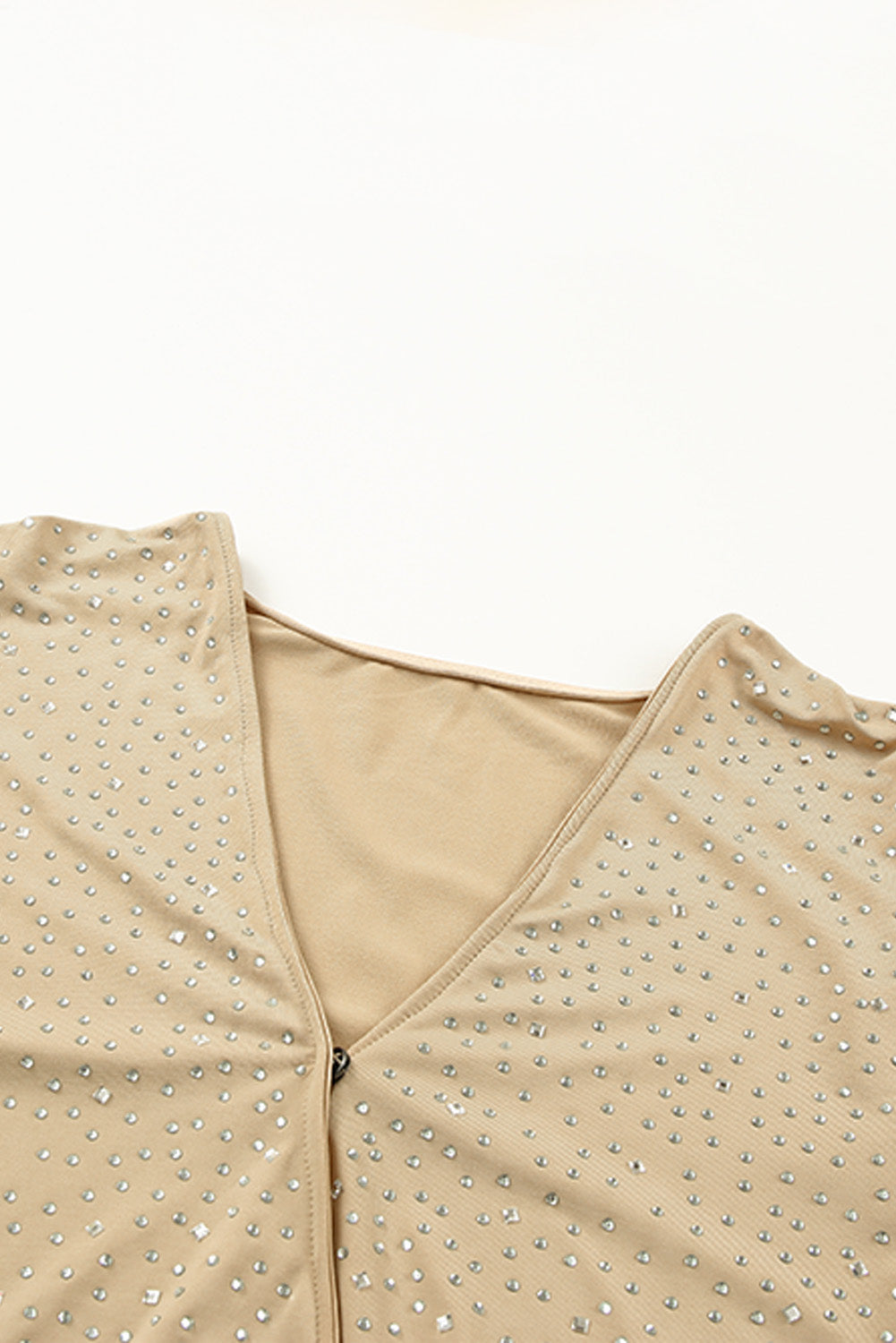 Khaki Rhinestone Surplice V Neck Long Sleeve Bodysuit