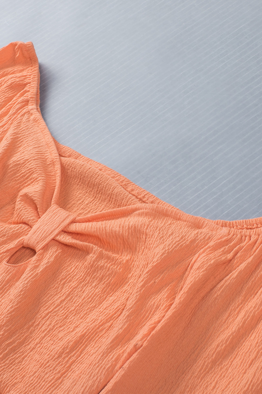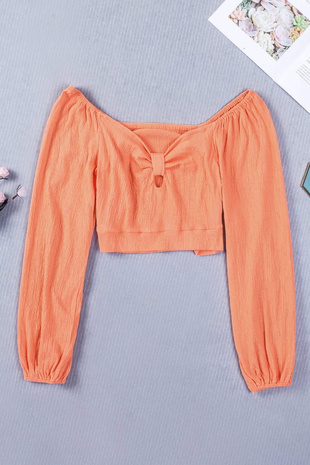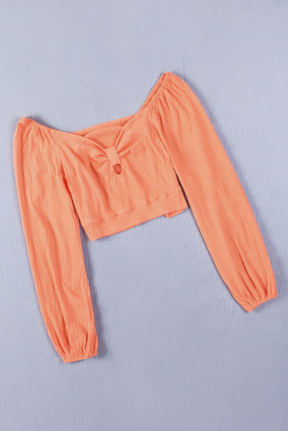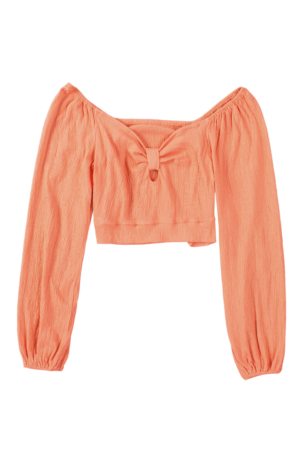 Knotted Puff Sleeve Textured Crop Top