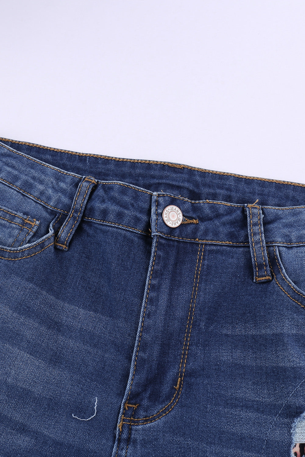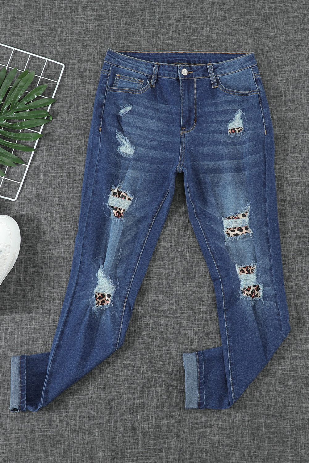 Leopard Patch Destroyed Skinny Blue Jeans