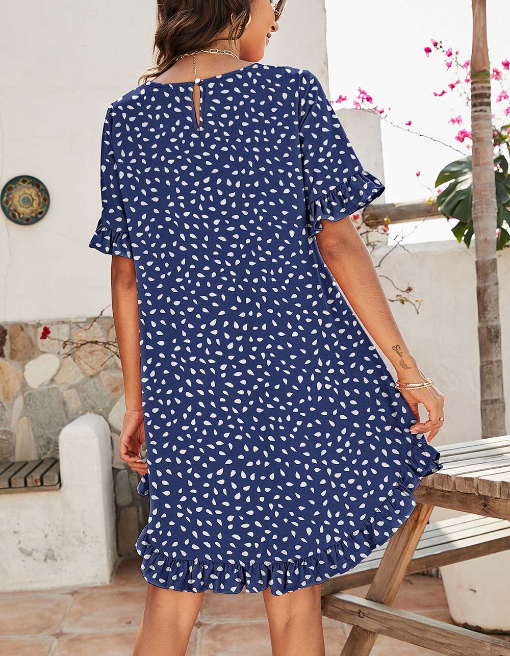 Leopard Print Round Neck Short Sleeve Ruffle Short A-Line Dresses