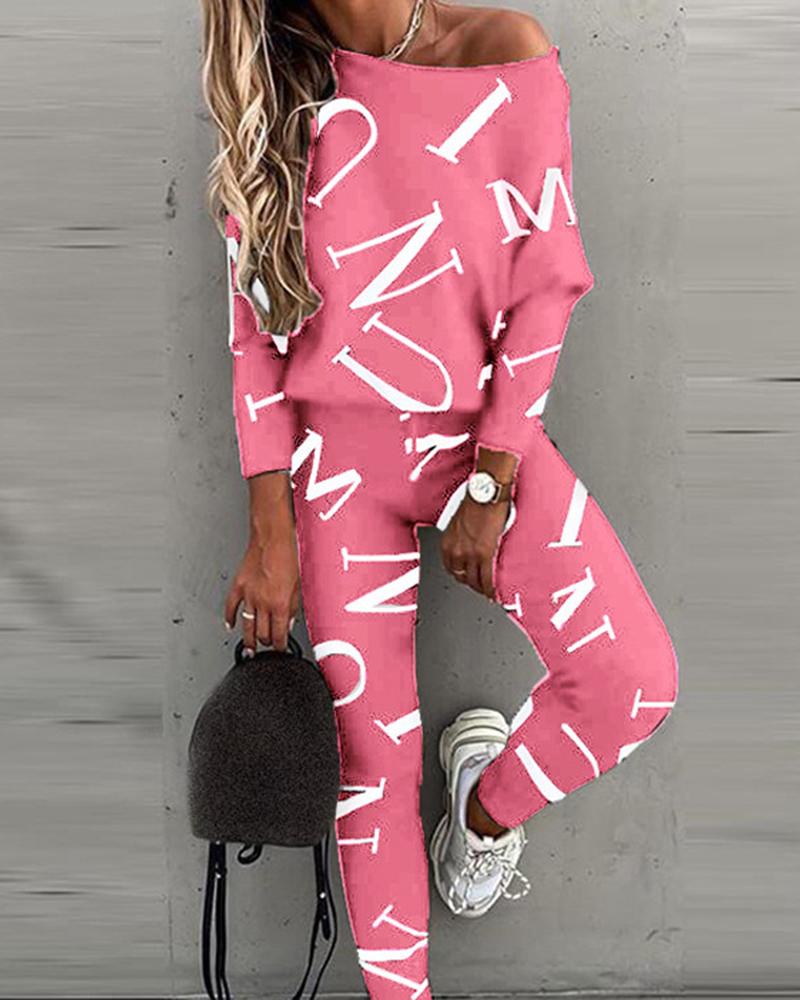 Letter Print Long Sleeve Top & Pants Set