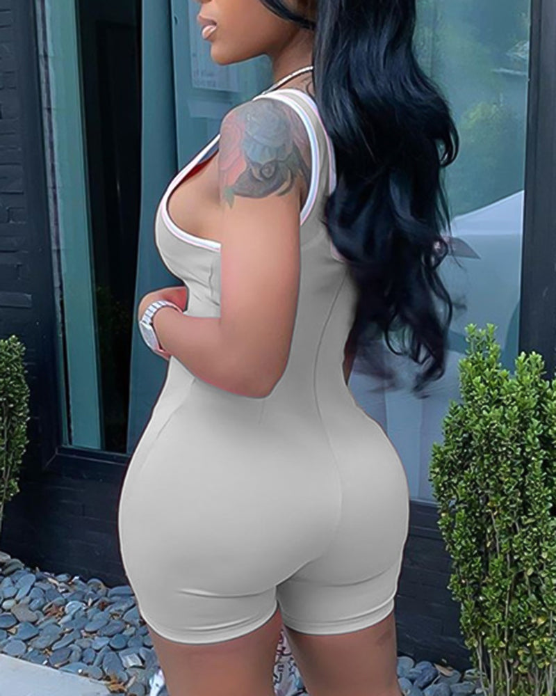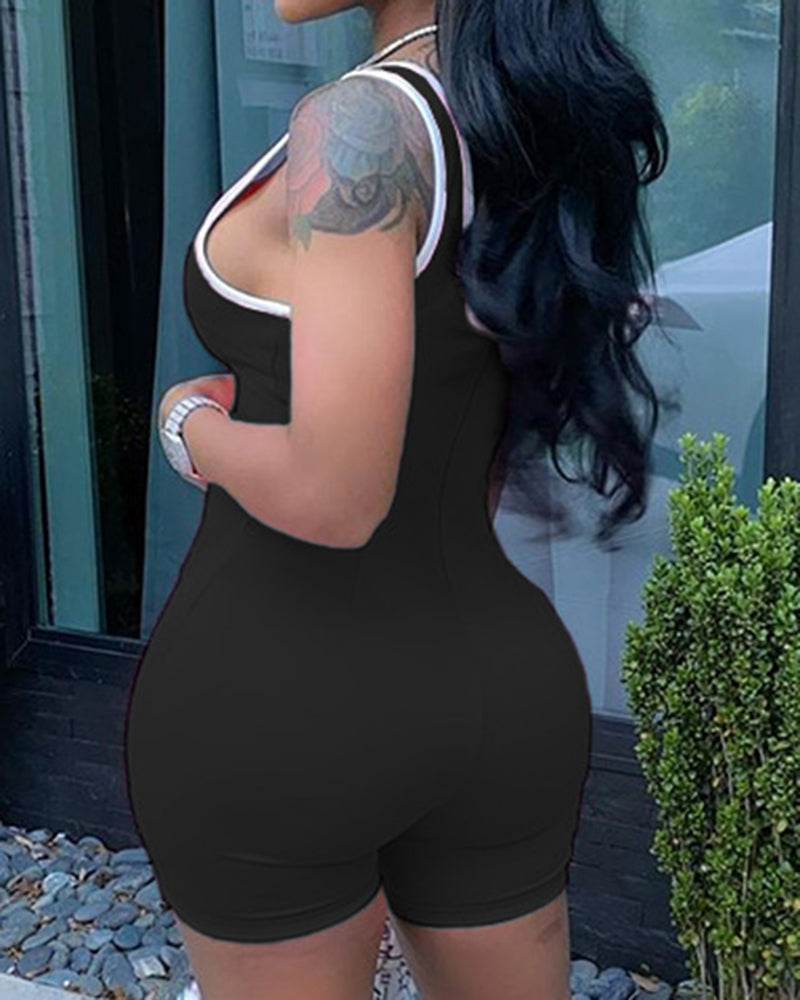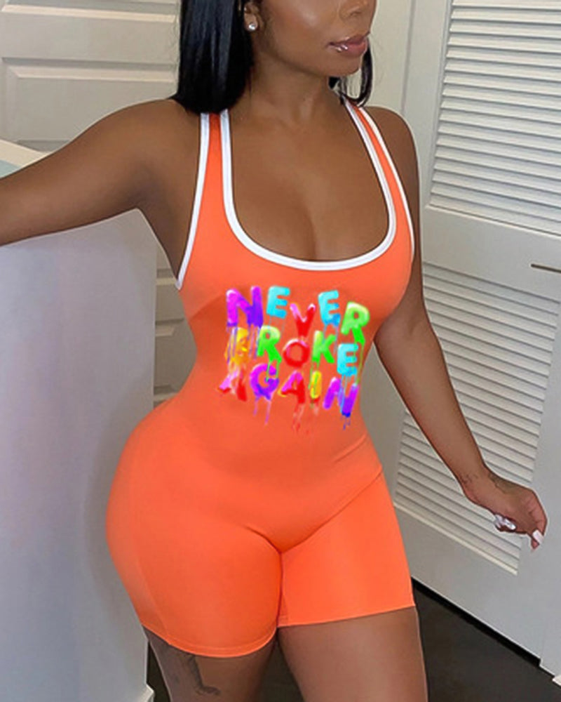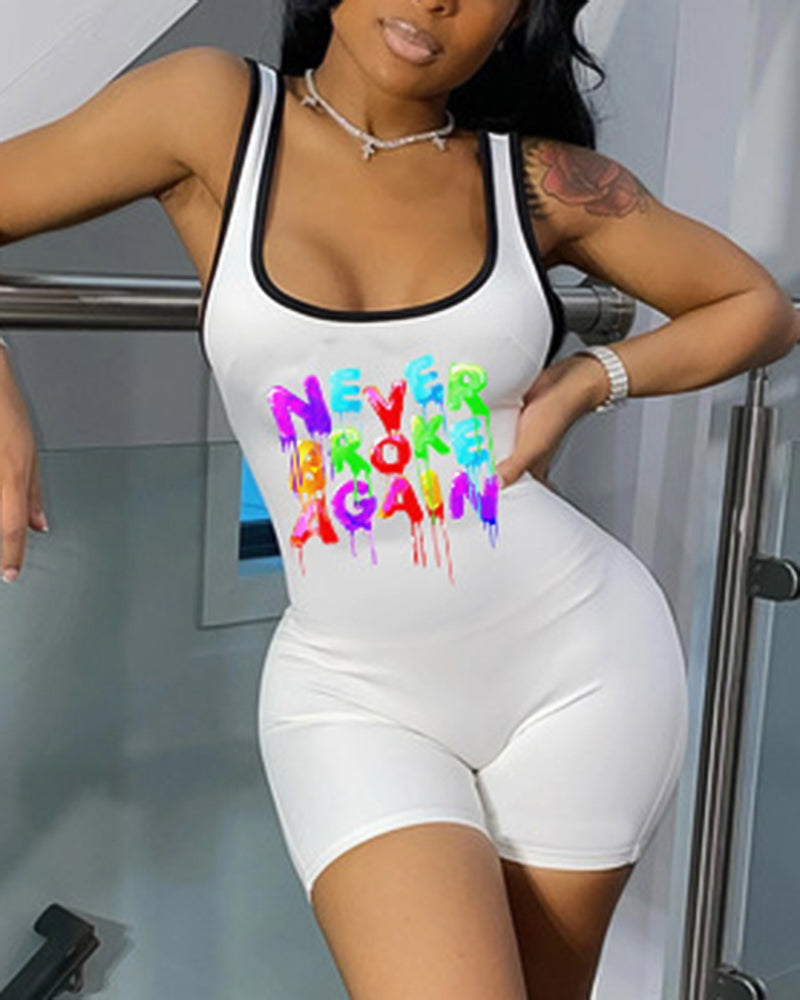 Letter Print Contrast Binding Tank Romper