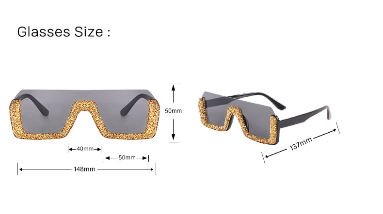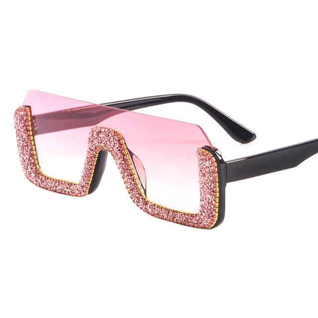 Luxury Crystal Half Frame Oversized Rhinestone Square Sunglasses