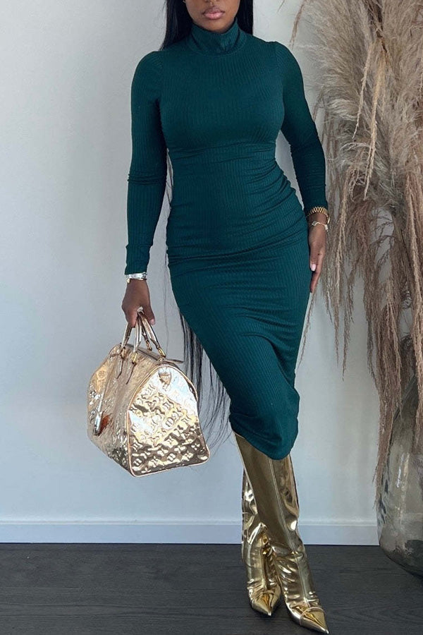 New Solid Color Ribbed Casual Fashion Dress