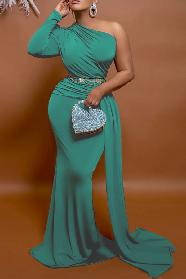 One Shoulder Solid Maxi Dress