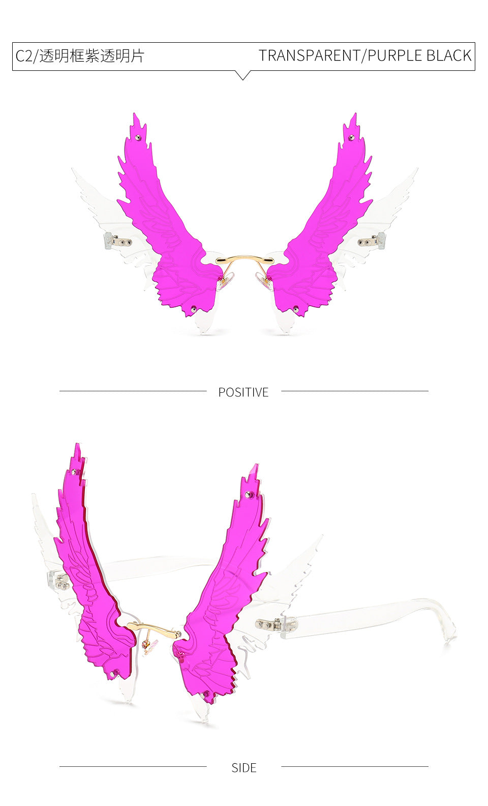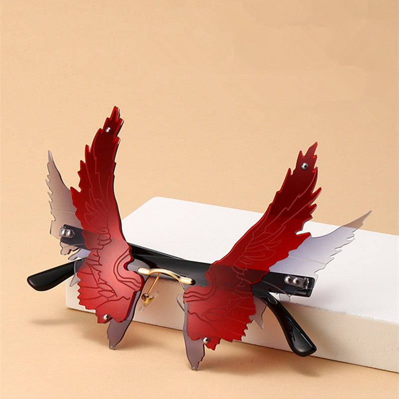 Oversized Rimless Wing Shape Retro Sunglasses