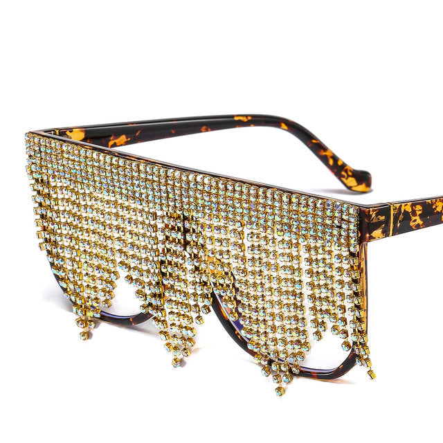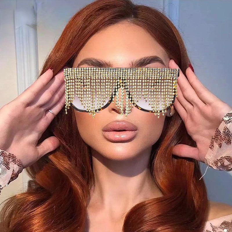 Oversized Sunglasses Tassel Diamond Handmake Eye Wear