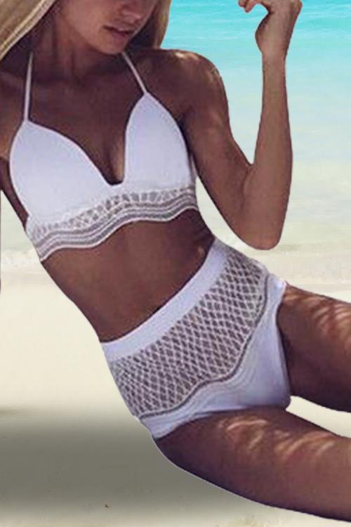 Bikini white lace sexy swimsuit swimsuit pure color small fresh with breast support